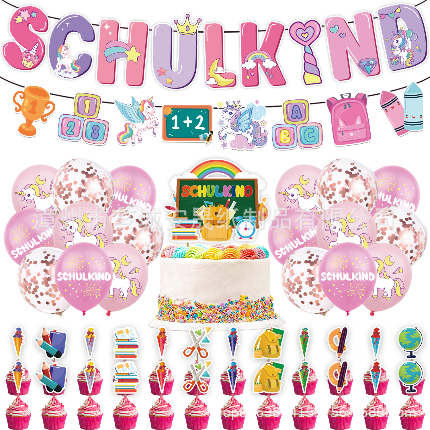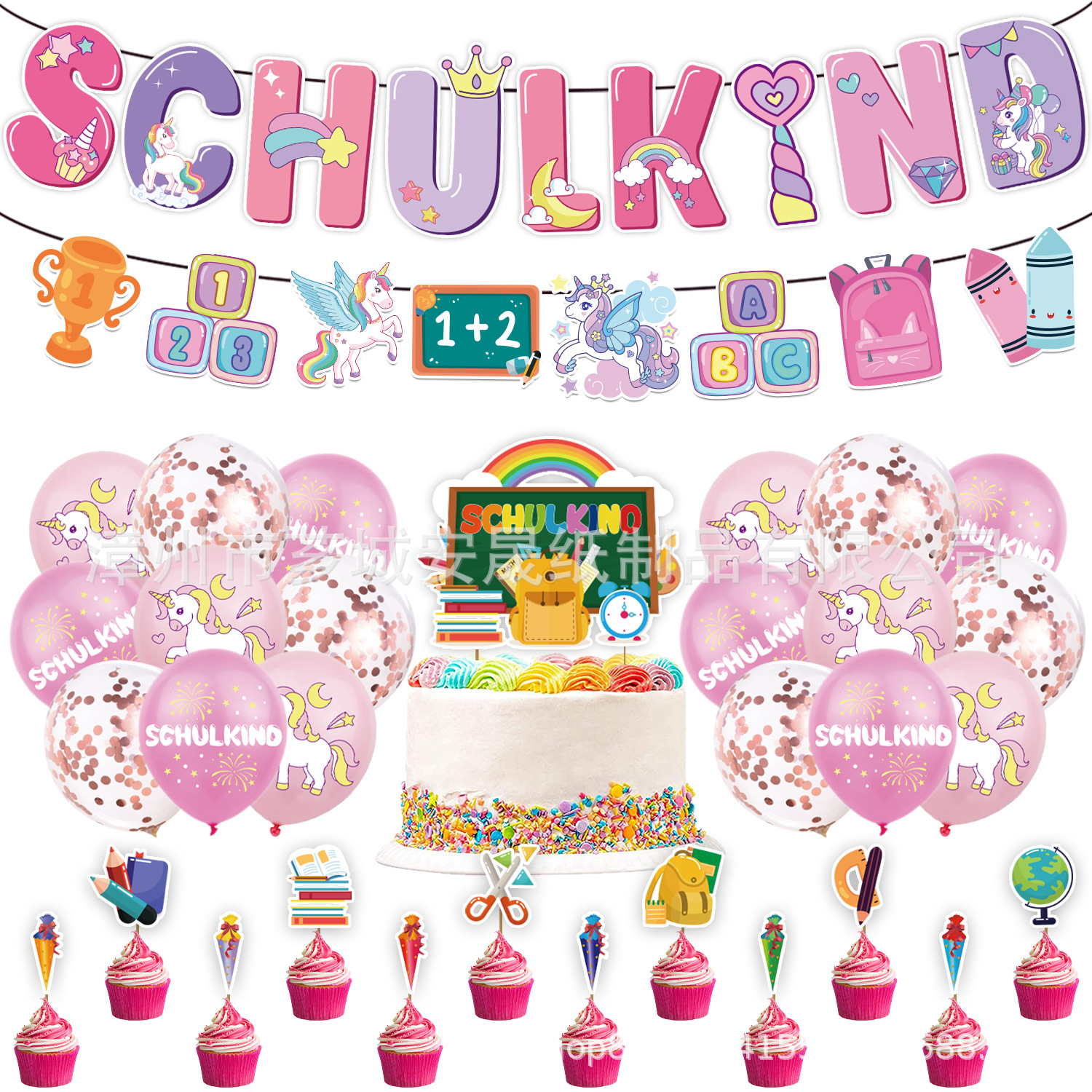 오프닝 시즌 테마 소녀 휴일 생일 장면 배열 파티 용품 장식 배너 풍선 깃발 세트