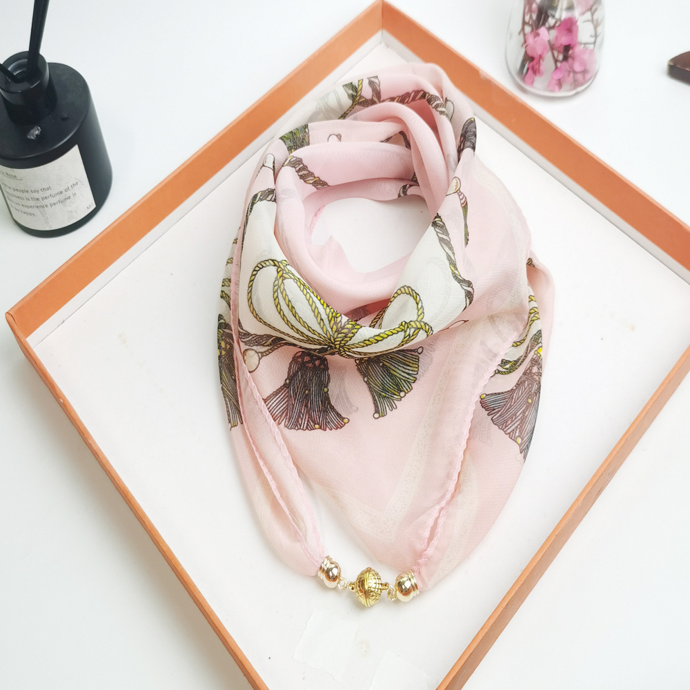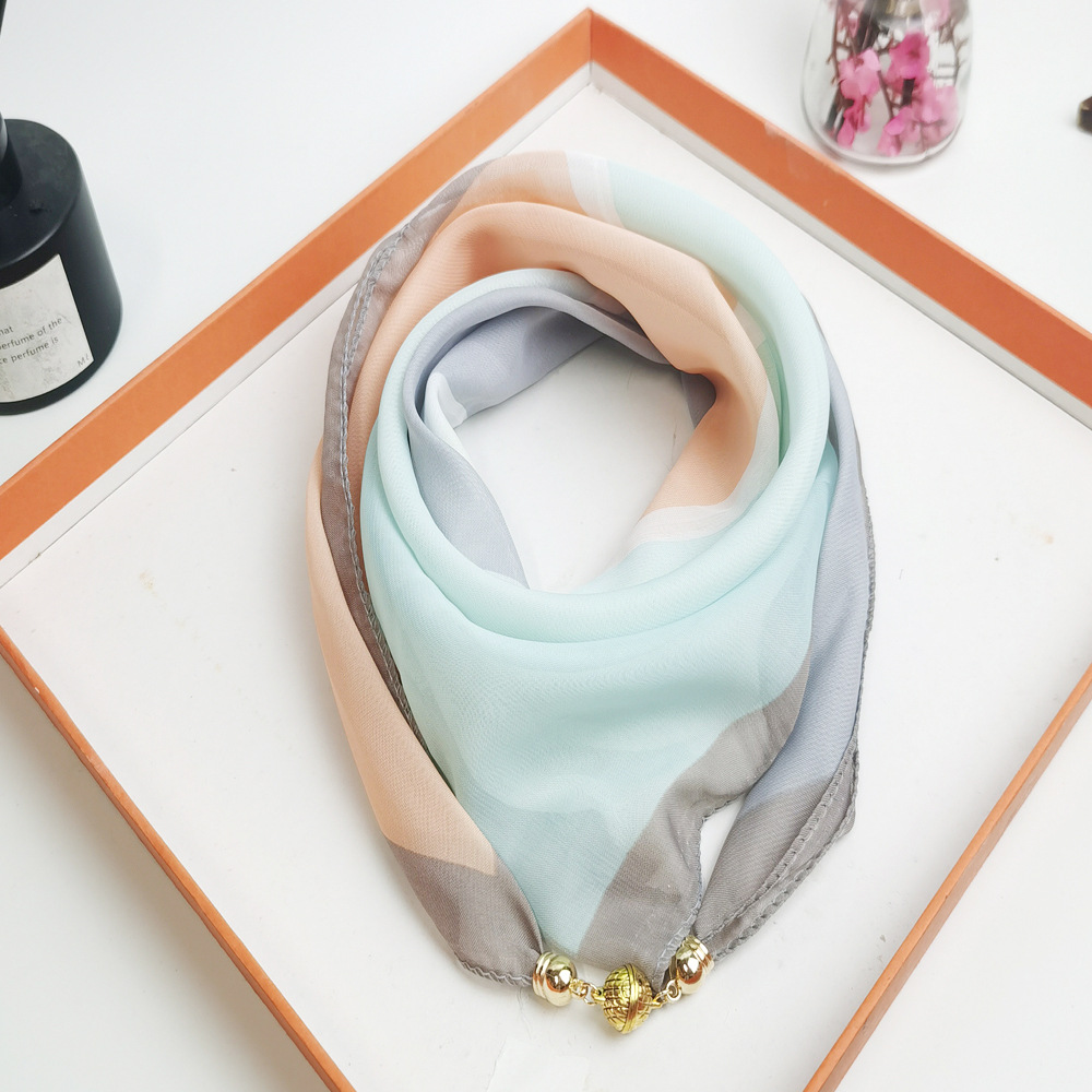 마그네틱 버클 작은 스카프 여성의 봄과 여름 2025 새로운 스타일 스퀘어 고급 실크 스카프 목 보호 목 삼각형 스카프스토어 가기