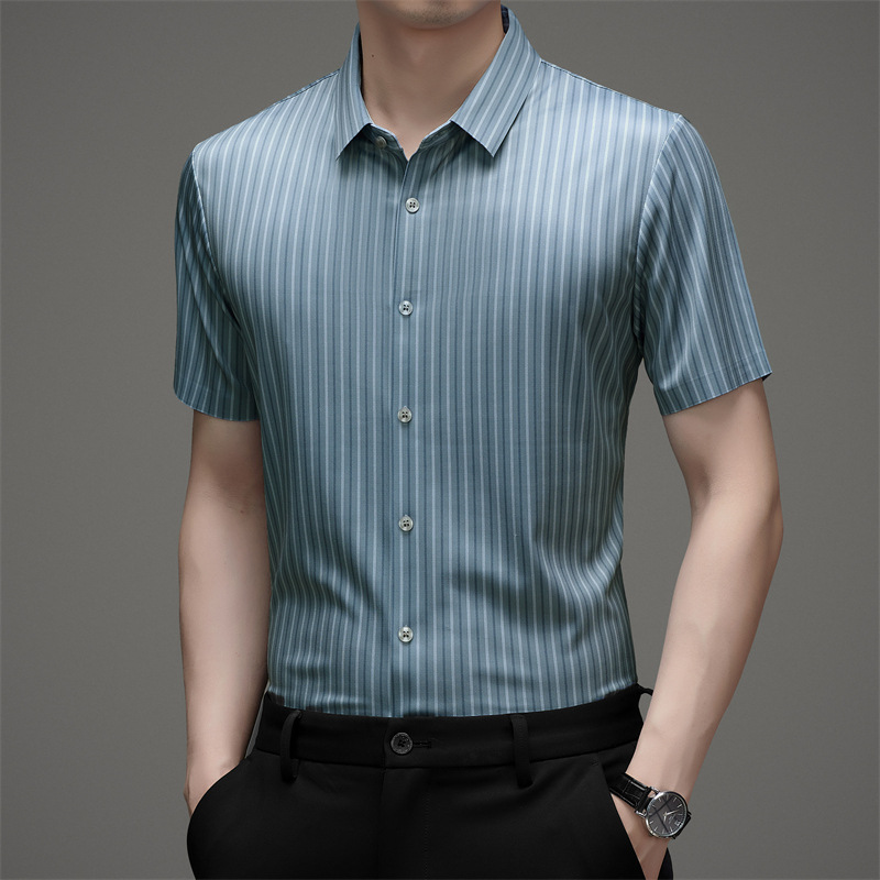 하이 엔드 남성 청소년 새로운 원활한 스트라이프 셔츠 옷깃 짧은 소매 여름 비즈니스 캐주얼 패션 셔츠 아빠 셔츠스토어 가기