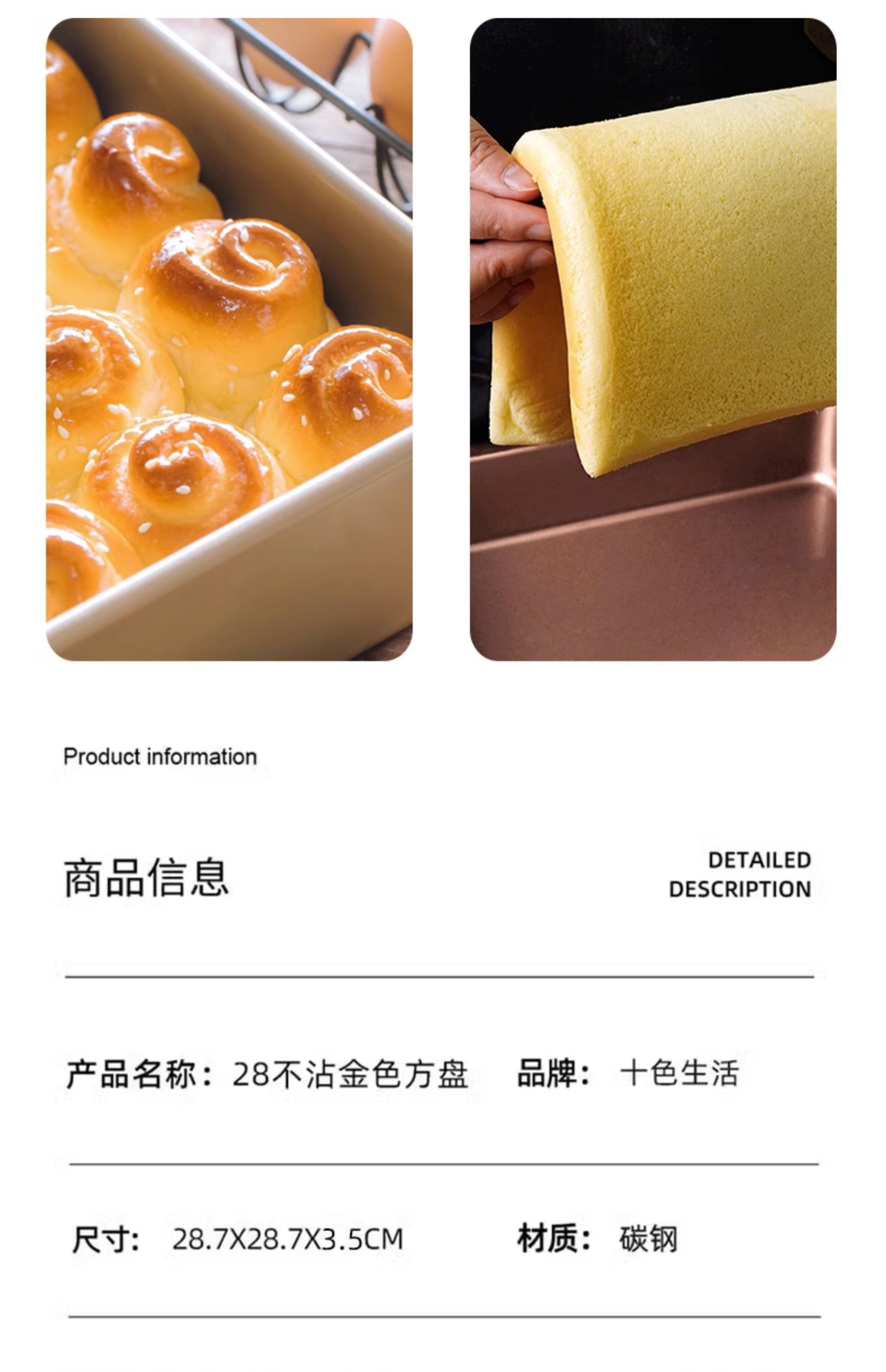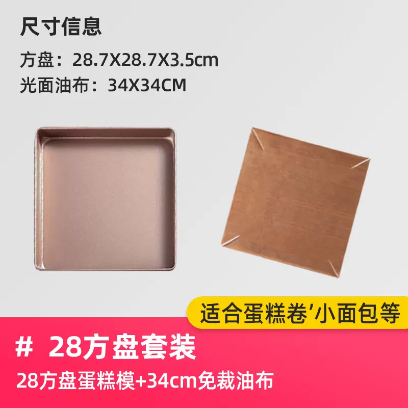 Xyt28CM 스퀘어 베이킹 팬 케이크 롤 금형 타월 고대 초기 쉬폰 오븐 노 가트 스틱 가정용 베이킹스토어 가기