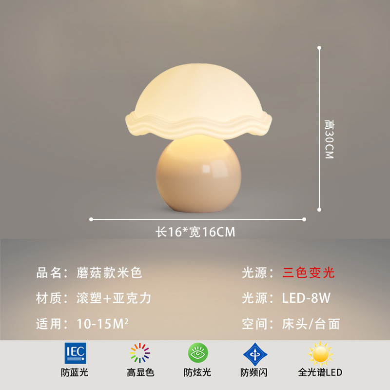 전체 스펙트럼 눈 보호 버섯 램프 크림 스타일 따뜻한 침실 침실 나이트 라이트 귀여운 생일 선물 분위기 테이블 램프