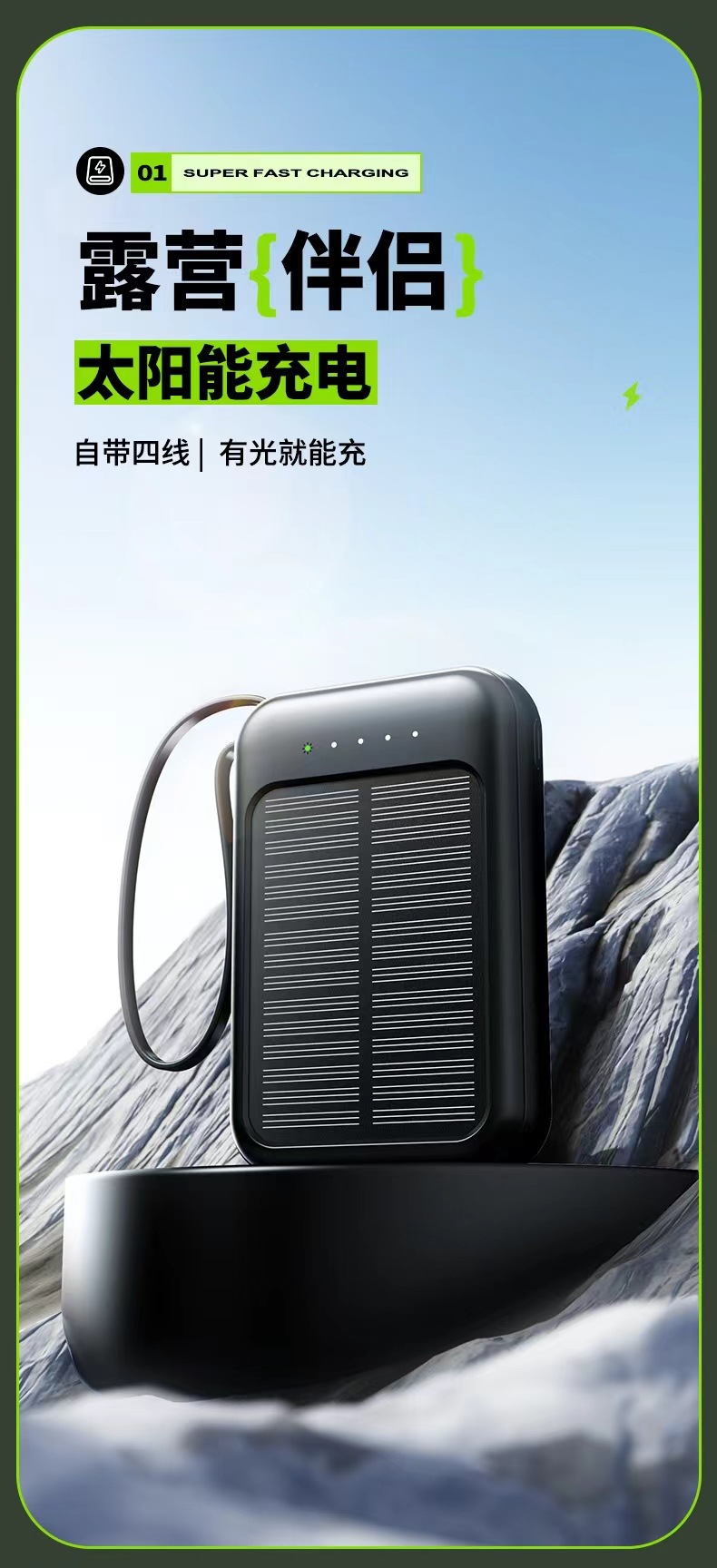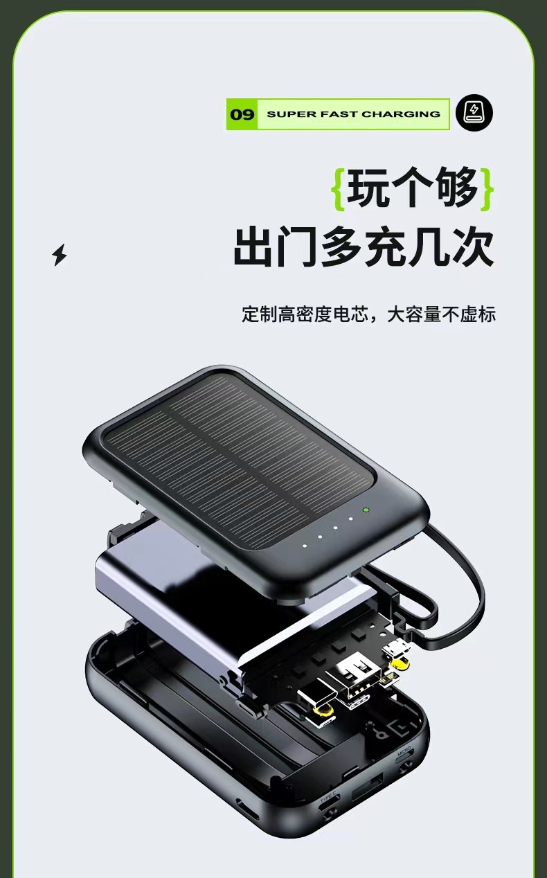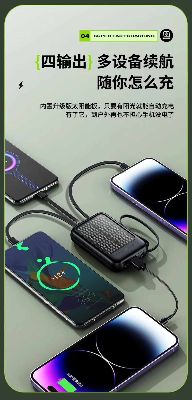 미니 태양 충전 보물 케이블 20000 mAh 야외 캠핑 휴대용 대용량 모바일 전원 도매