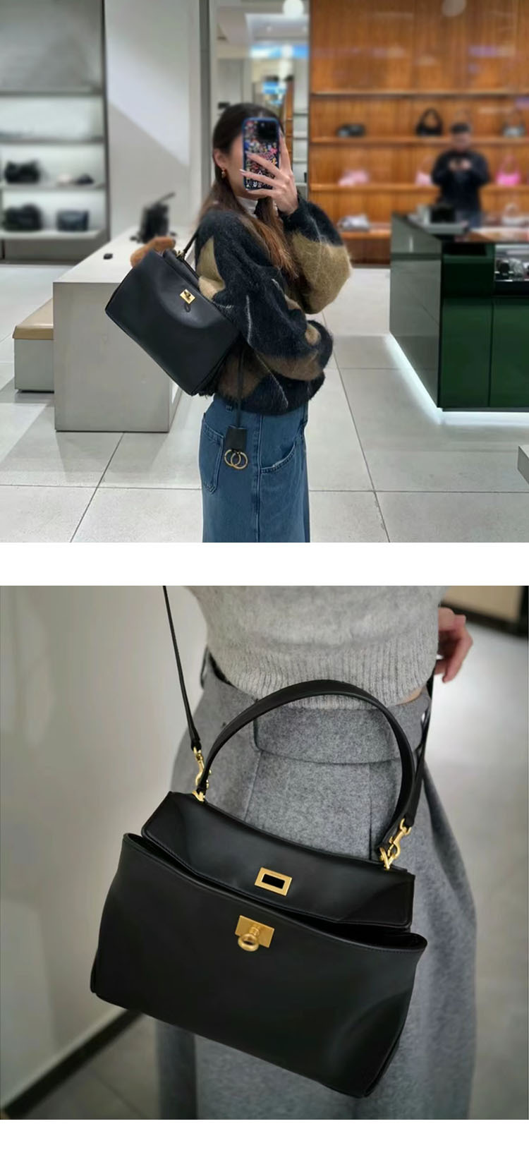 [슈퍼 에이 하이 상품] B 로데오 소프트 카우 히데 토트 백 대용량 잠금 어깨 크로스 바디 캐주얼 통근 가방