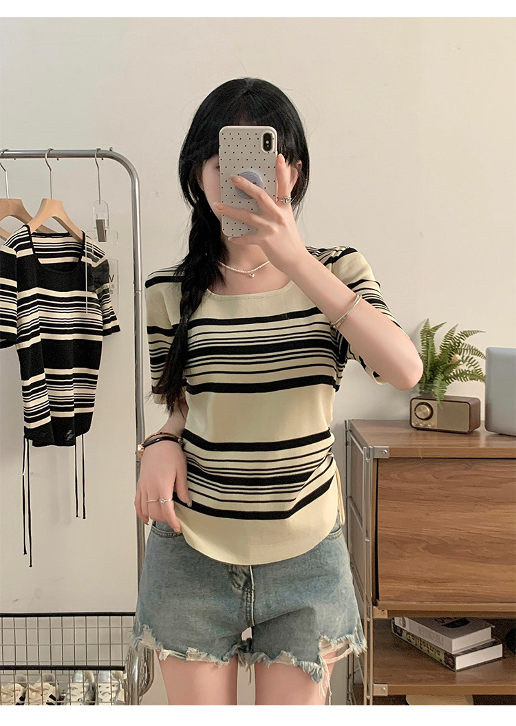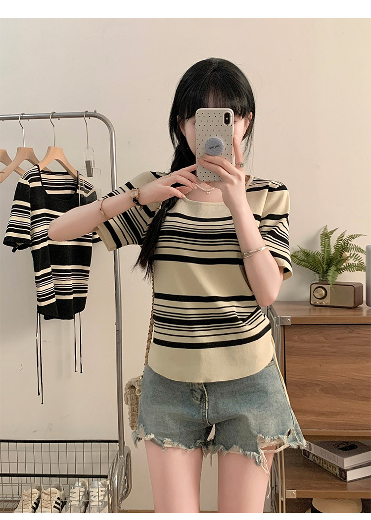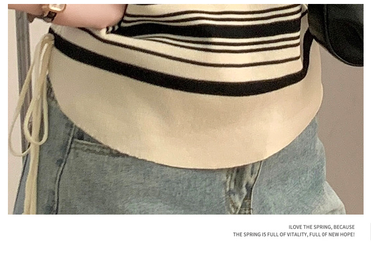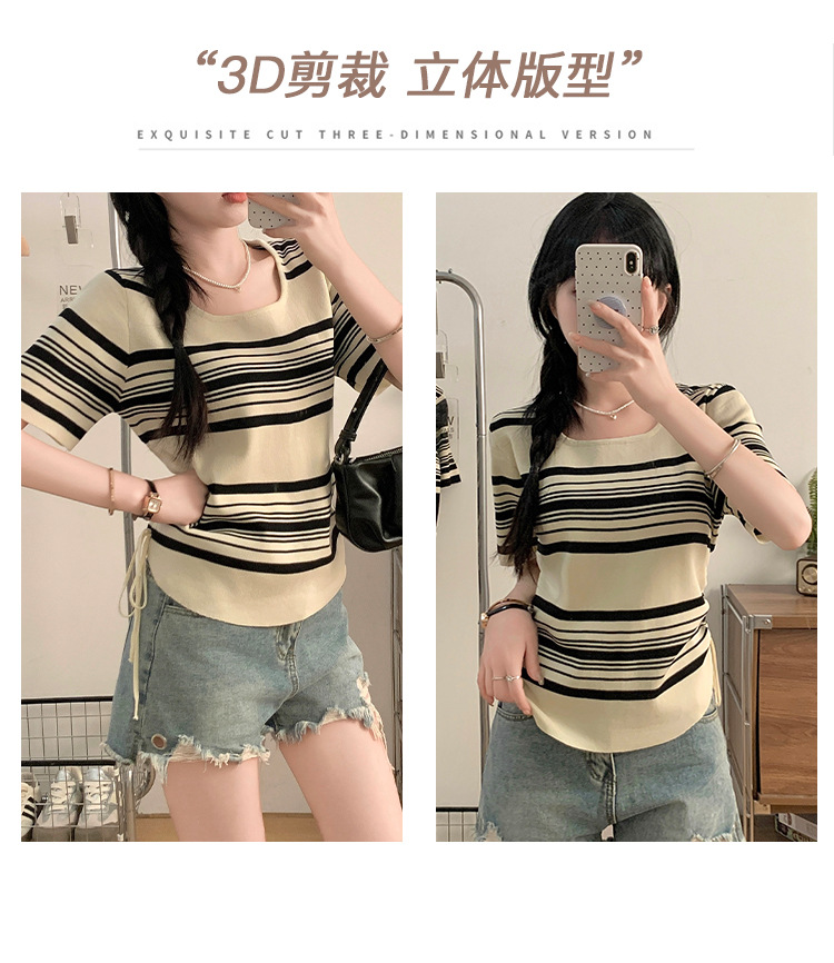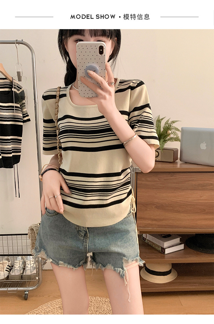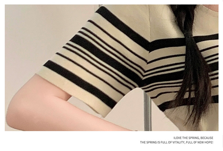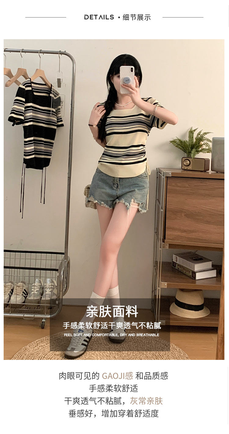 40.00 kg-69.00 kg! 2024 여름 새로운 라운드 넥 드로스트링 니트 전나무 얇은 아이스 실크 티셔츠 전나무스토어 가기
