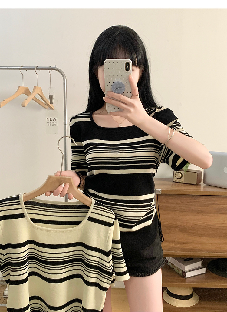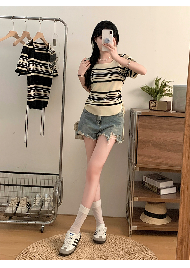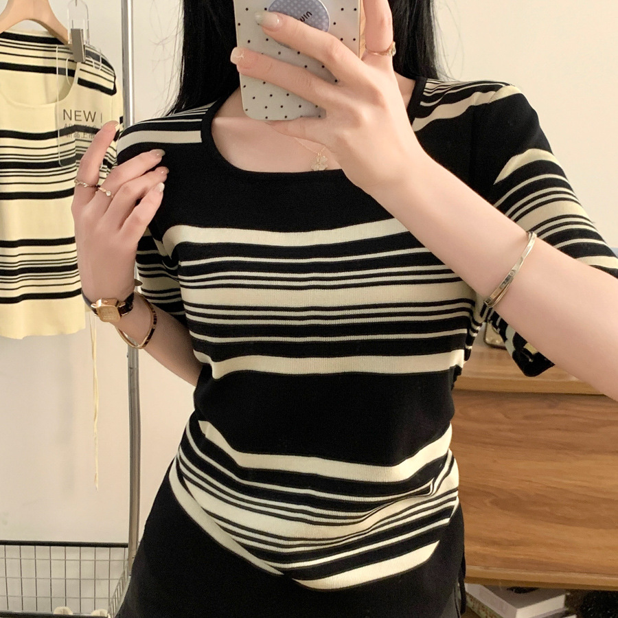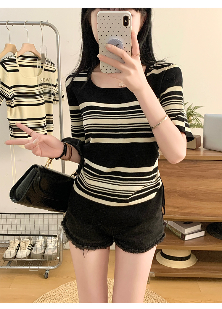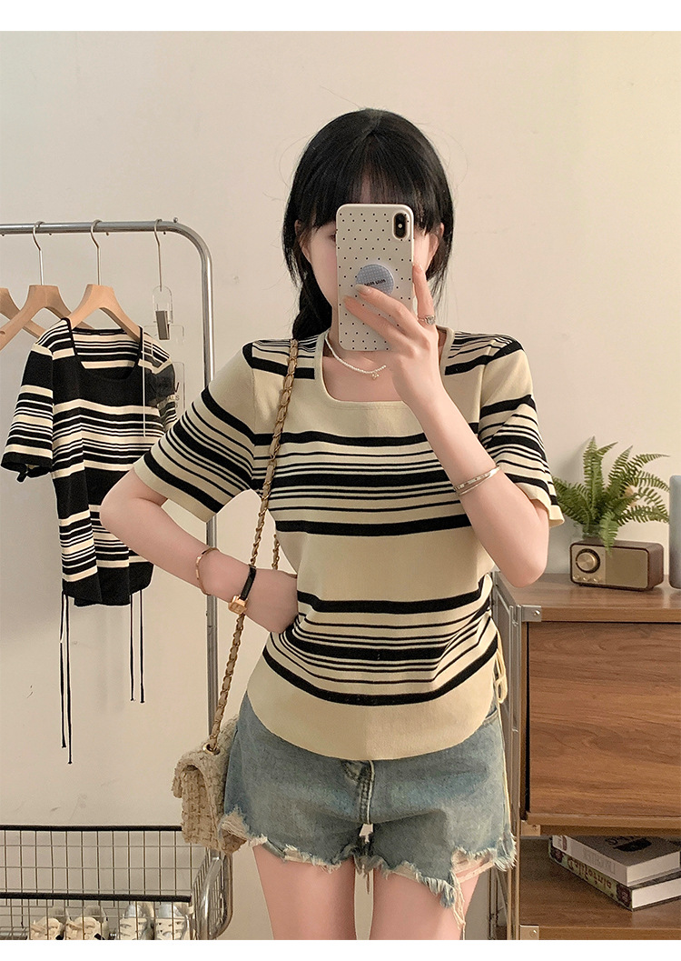 40.00 kg-69.00 kg! 2024 여름 새로운 라운드 넥 드로스트링 니트 전나무 얇은 아이스 실크 티셔츠 전나무스토어 가기