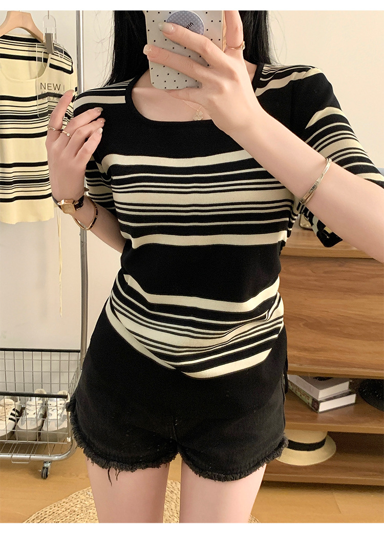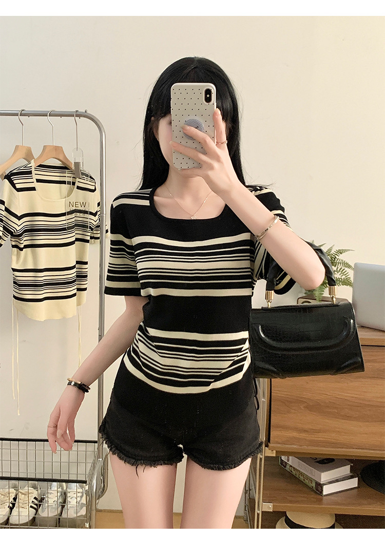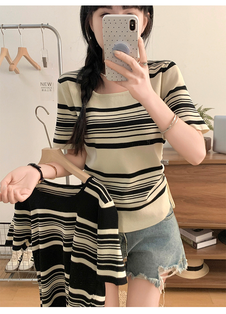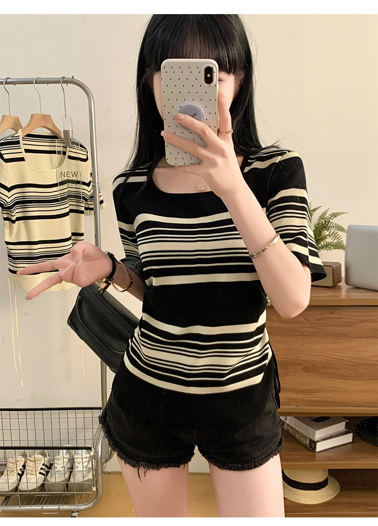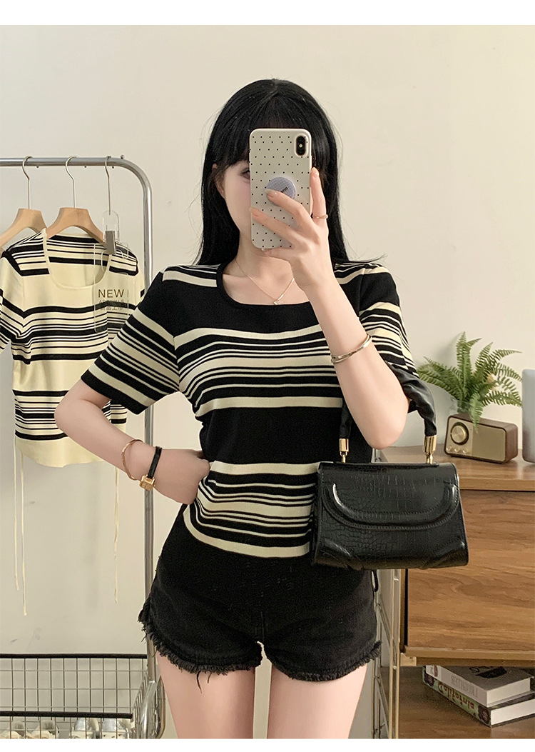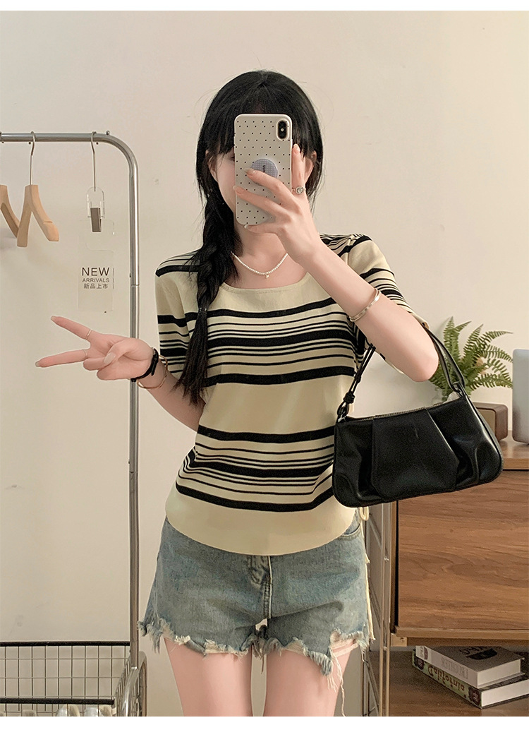 40.00 kg-69.00 kg! 2024 여름 새로운 라운드 넥 드로스트링 니트 전나무 얇은 아이스 실크 티셔츠 전나무스토어 가기