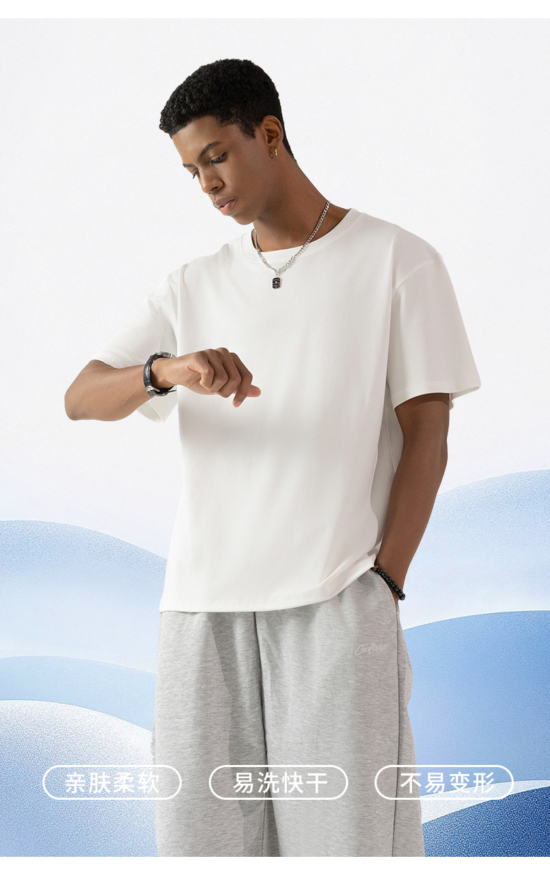 피마 코튼 티셔츠 여성용 반팔 남성용 시원한 진드기 방지 및 항균 긴 스테이플 코튼 반팔 라운드 넥 슬림 오른쪽 어깨 바닥 셔츠스토어 가기