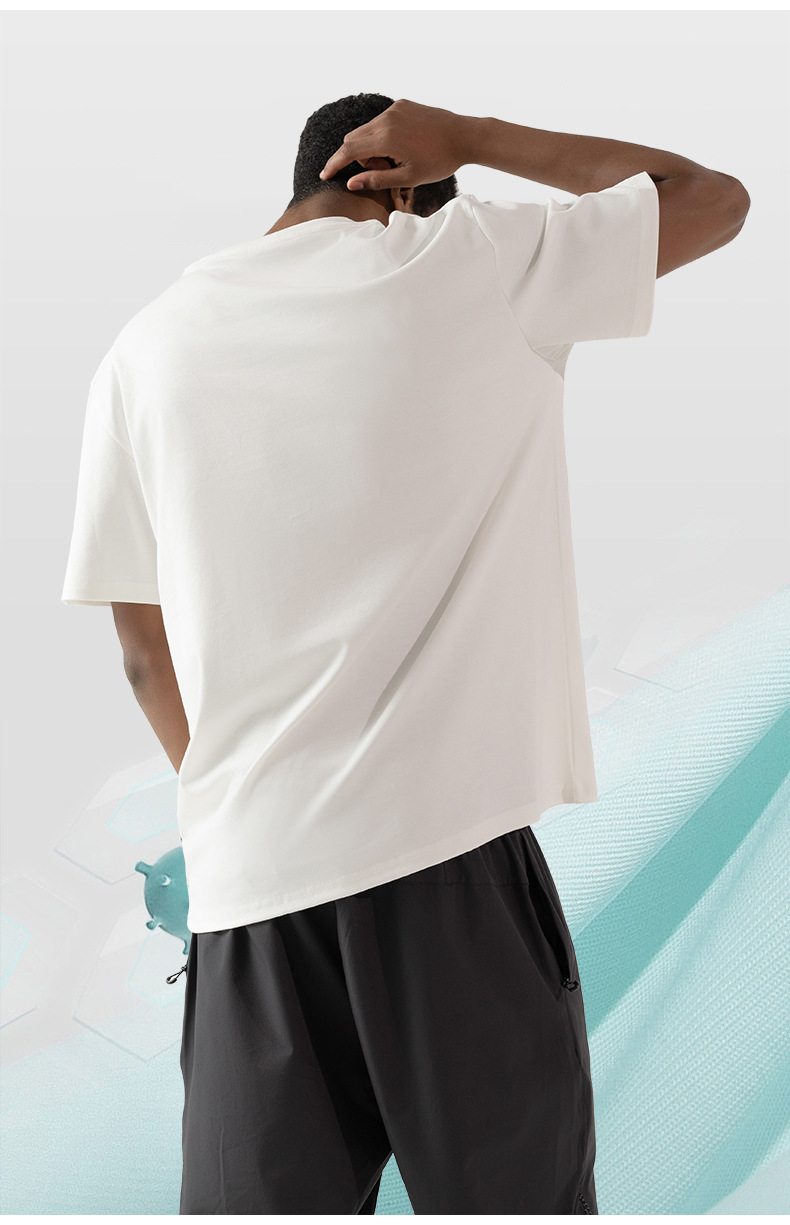 • 남성용 루즈한 작은 네크라인 짧은 T-아이보리 화이트