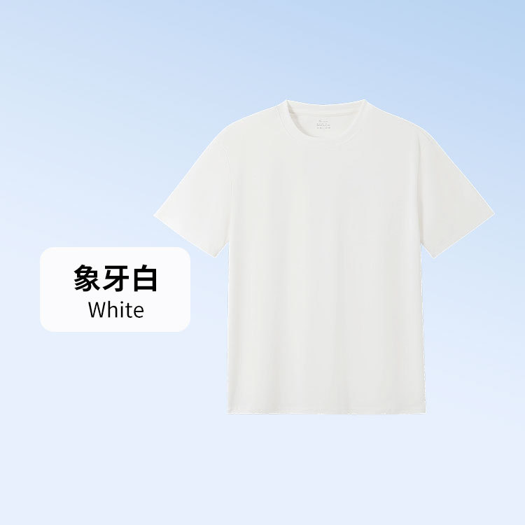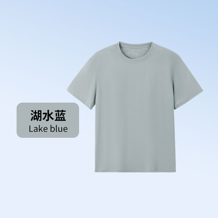 피마 코튼 티셔츠 여성용 반팔 남성용 시원한 진드기 방지 및 항균 긴 스테이플 코튼 반팔 라운드 넥 슬림 오른쪽 어깨 바닥 셔츠