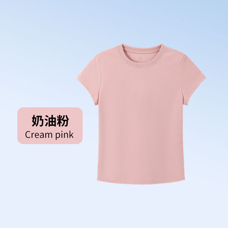 • 여성용 스몰 버전 좁은 어깨 쇼트 T-크림 핑크