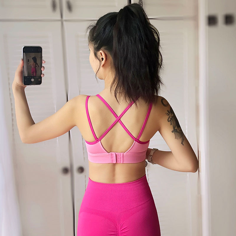 여성용 신형 푸쉬업 스포츠 브라, 충격방지 런닝 트레이닝 브라, 피트니스웨어, 아름다운 등 올인원 요가복 조끼