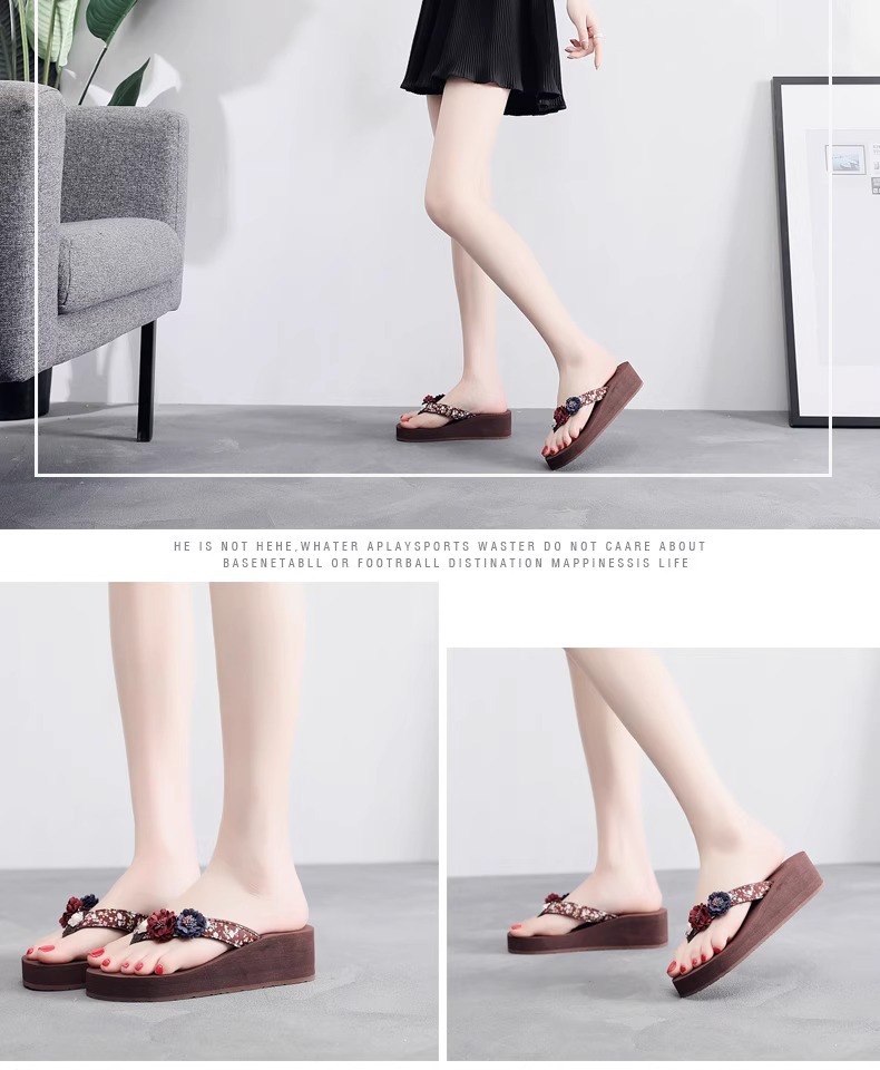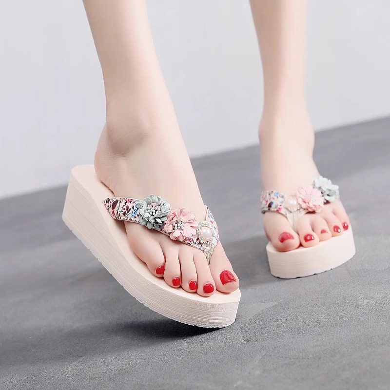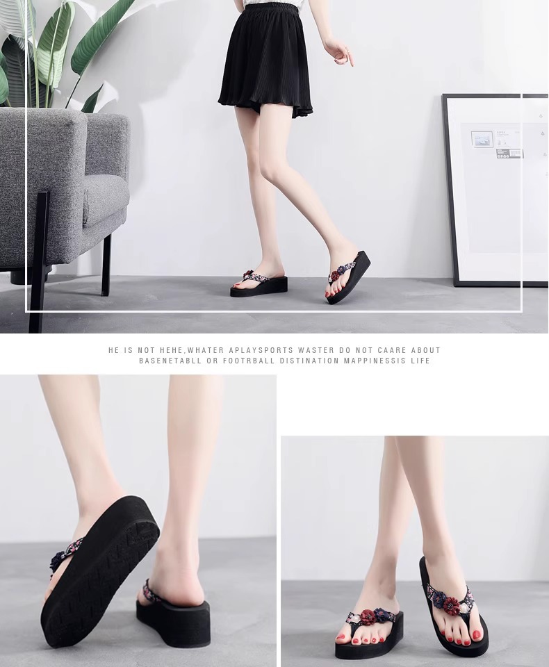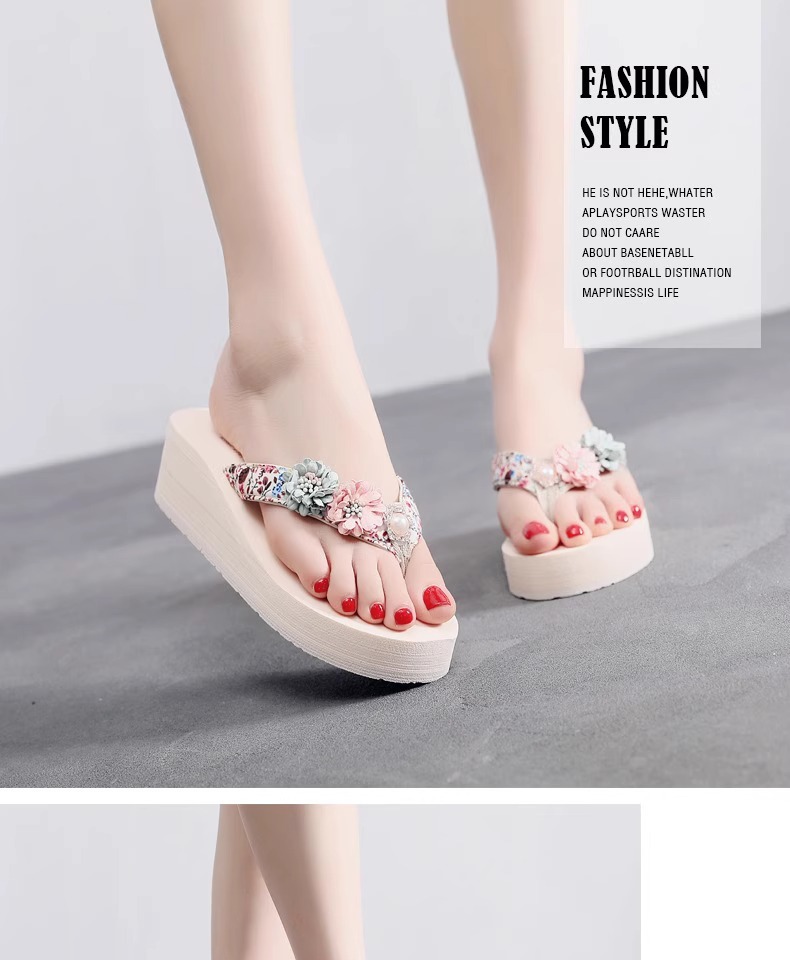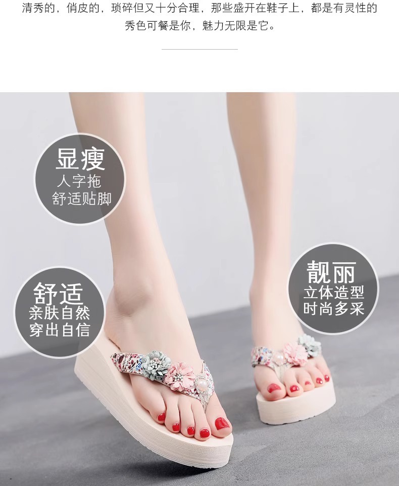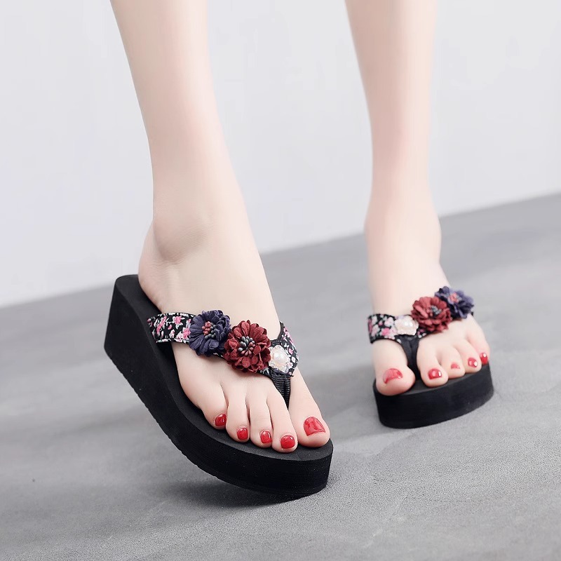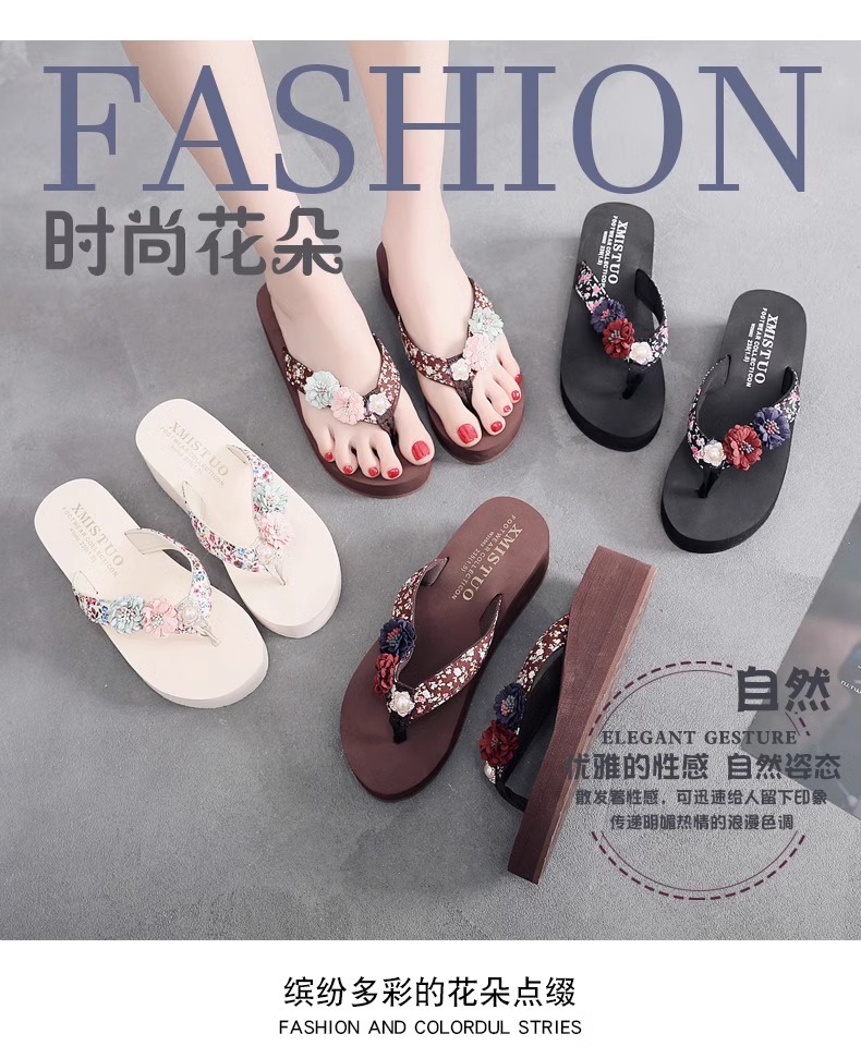 여름 새로운 꽃 여성의 두꺼운 밑바닥 미끄럼 방지 샌들과 슬리퍼 외부 착용 패션 해변 휴일 슬리퍼