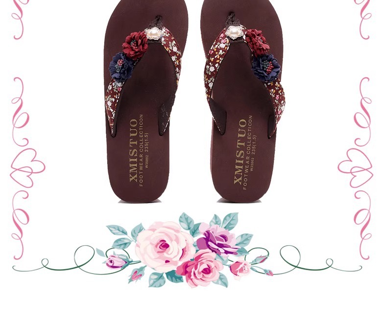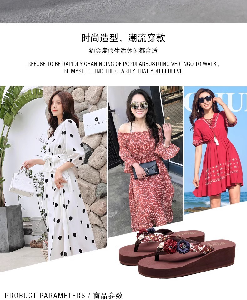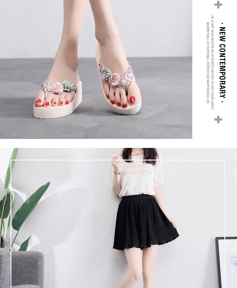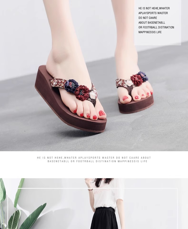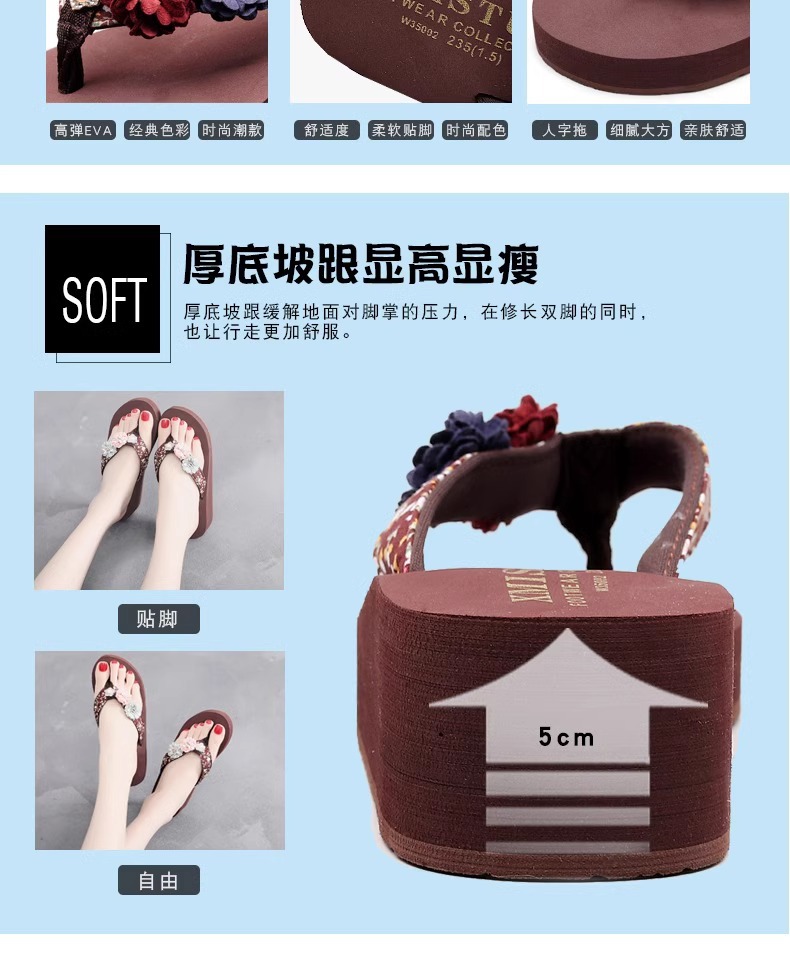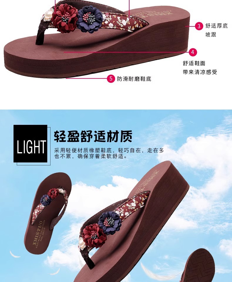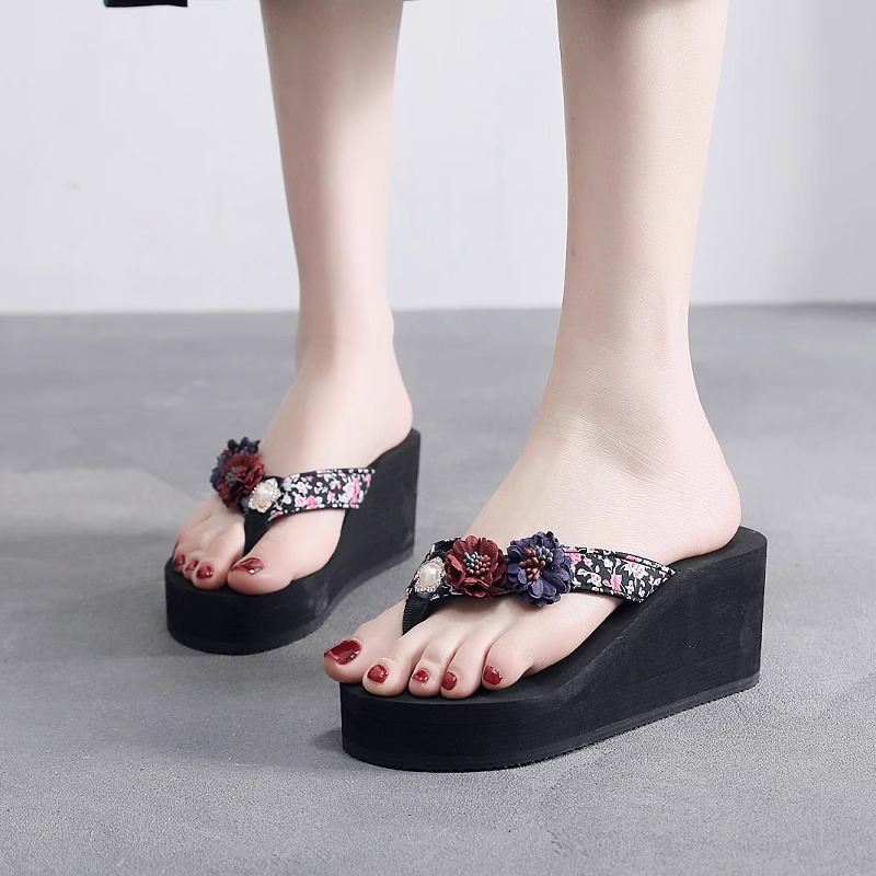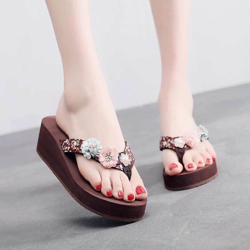 여름 새로운 꽃 여성의 두꺼운 밑바닥 미끄럼 방지 샌들과 슬리퍼 외부 착용 패션 해변 휴일 슬리퍼