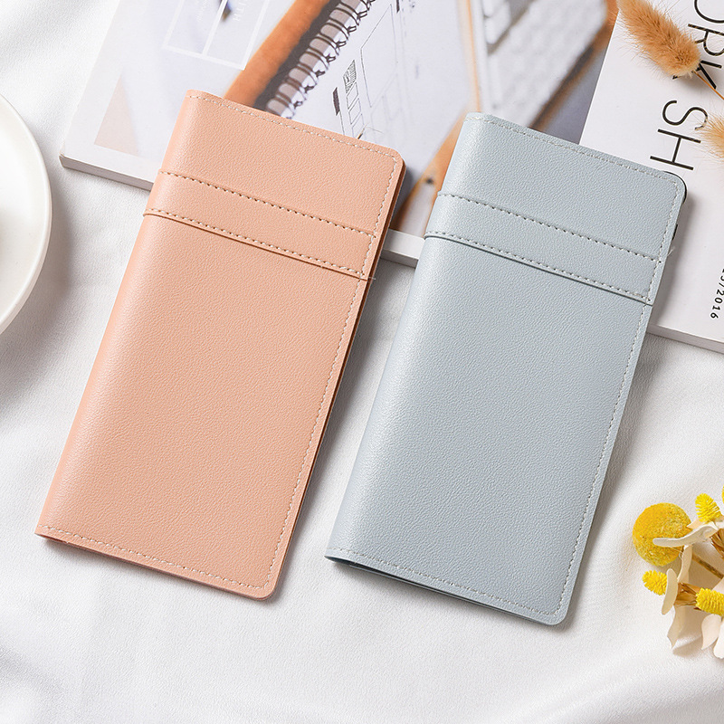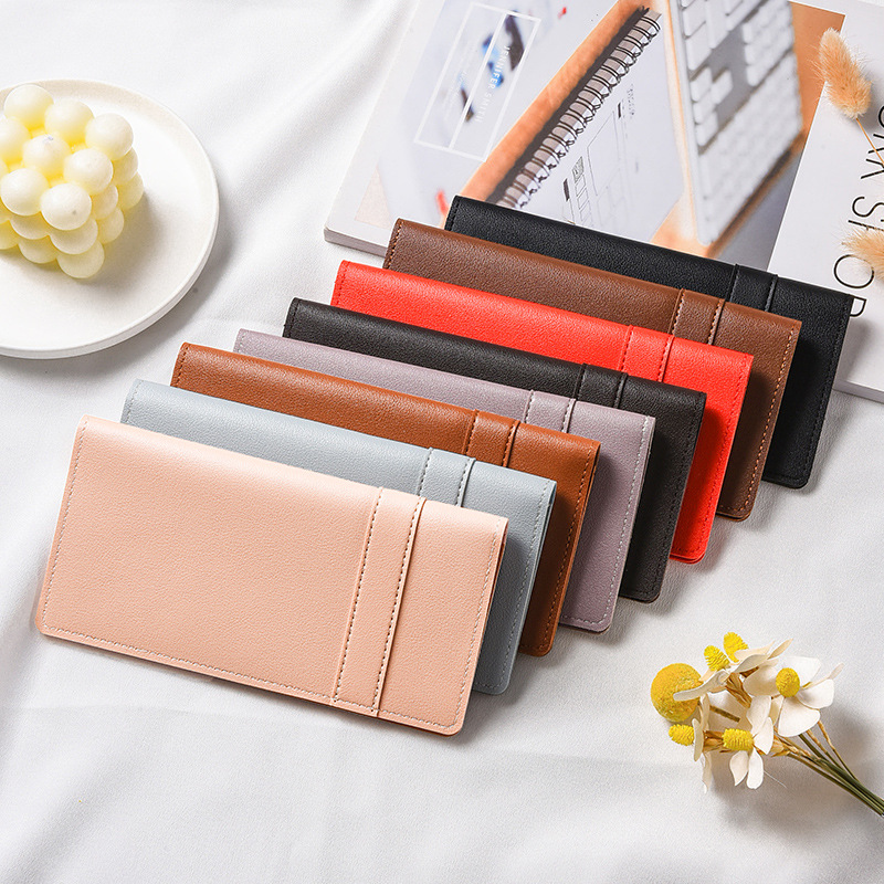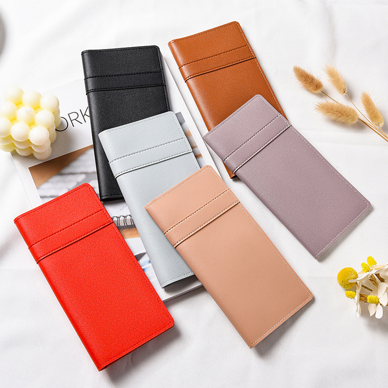 유행 간단한 울트라 얇은 여성의 긴 지갑 새로운 버클 멀티 카드 홀더 가죽 지갑 동전 지갑 올 매치 지갑스토어 가기