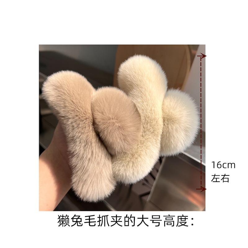 大号真獭兔毛后脑勺抓夹网红超大毛毛发夹可爱毛绒头饰发抓发饰冬