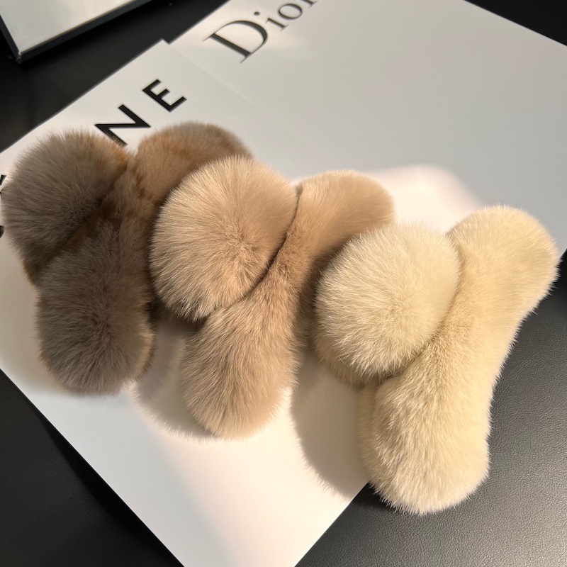 큰 진짜 렉스 토끼 머리 머리 뒤쪽 클립 인터넷 연예인 대형 헤어 클립 귀여운 플러시 헤드웨어 헤어 액세서리 겨울스토어 가기