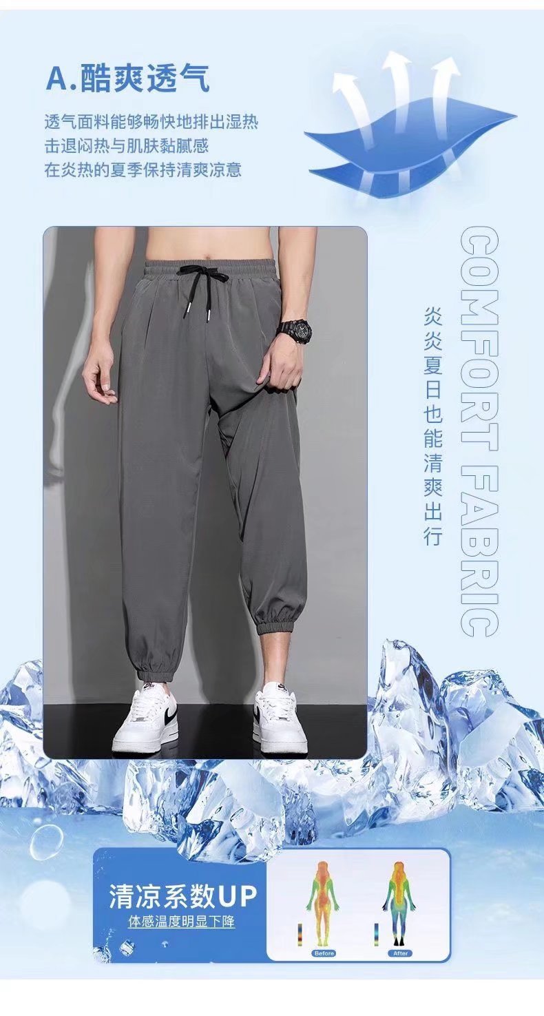 바지 남자 여름 얇은 아이스 실크 빠른 건조 2022 새로운 도착 느슨한 스포츠 트렌디 올매치 다리-발가락 캐주얼 바지스토어 가기