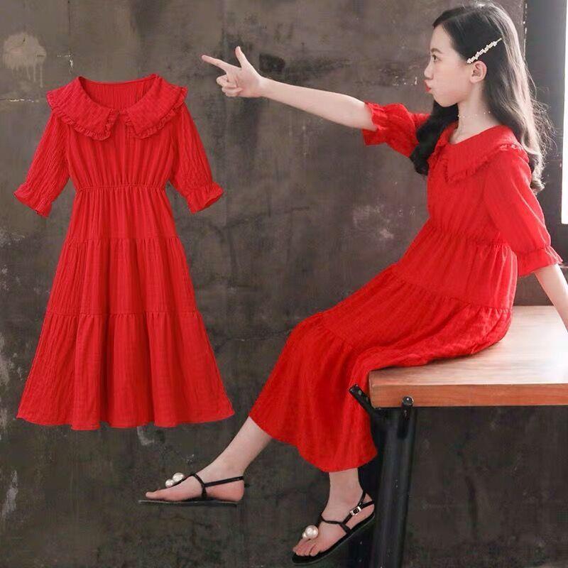 여자 원피스 여름 원피스 새로운 어린이 공주 원피스 여자 한국 스타일 인형 칼라 서양식 원피스 요정