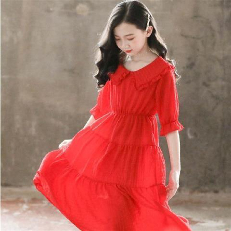 여자 원피스 여름 원피스 새로운 어린이 공주 원피스 여자 한국 스타일 인형 칼라 서양식 원피스 요정스토어 가기