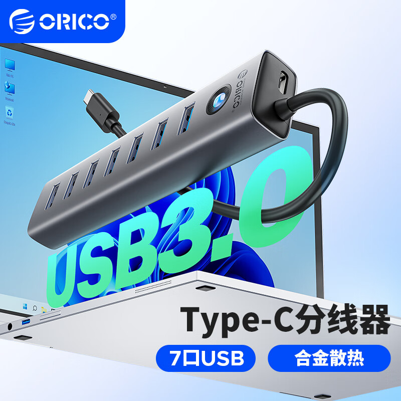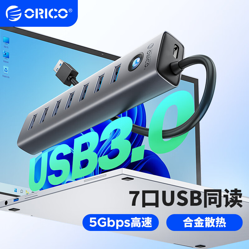 노트북 컴퓨터 USB3.0 스플리터 7 포트 도킹 스테이션 알루미늄 합금 허브 컨버터 외부 전원 공급 장치스토어 가기