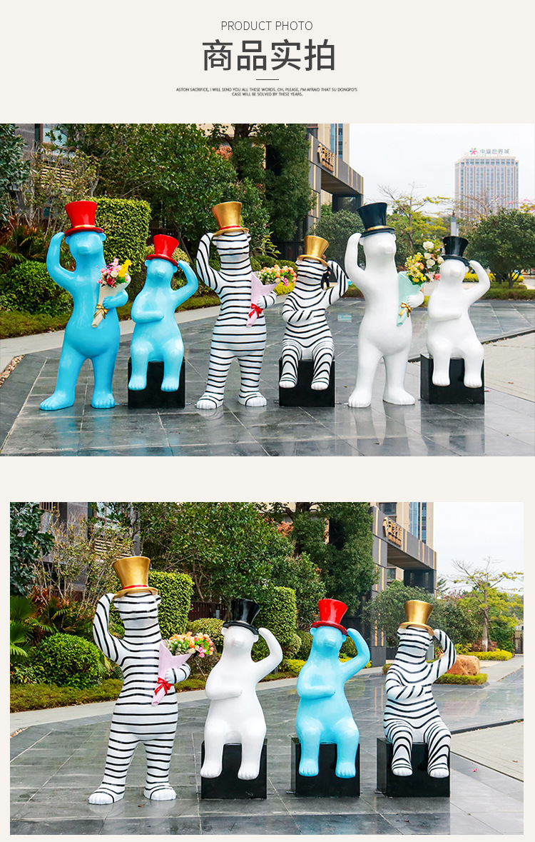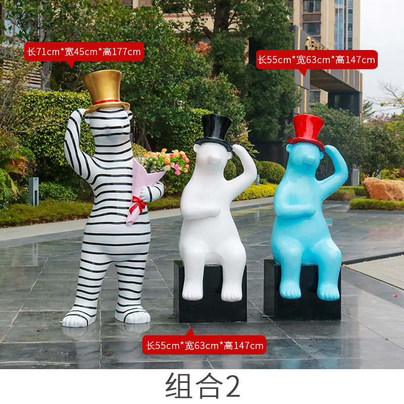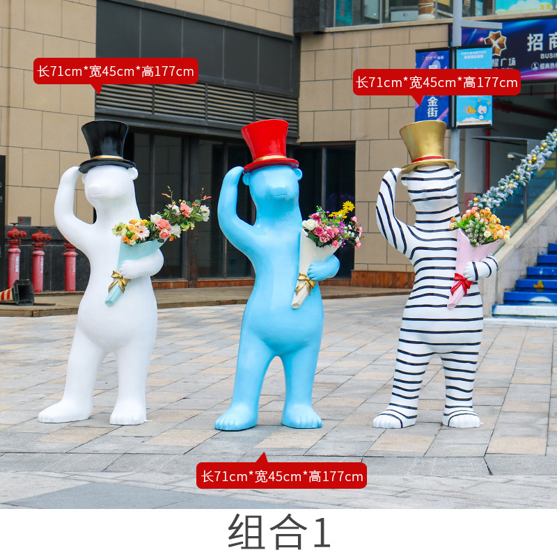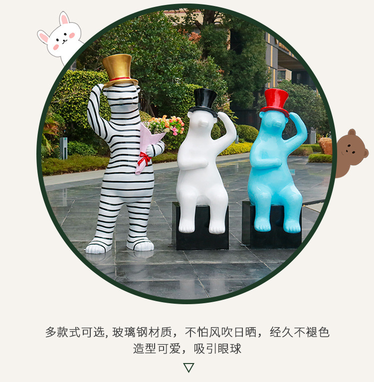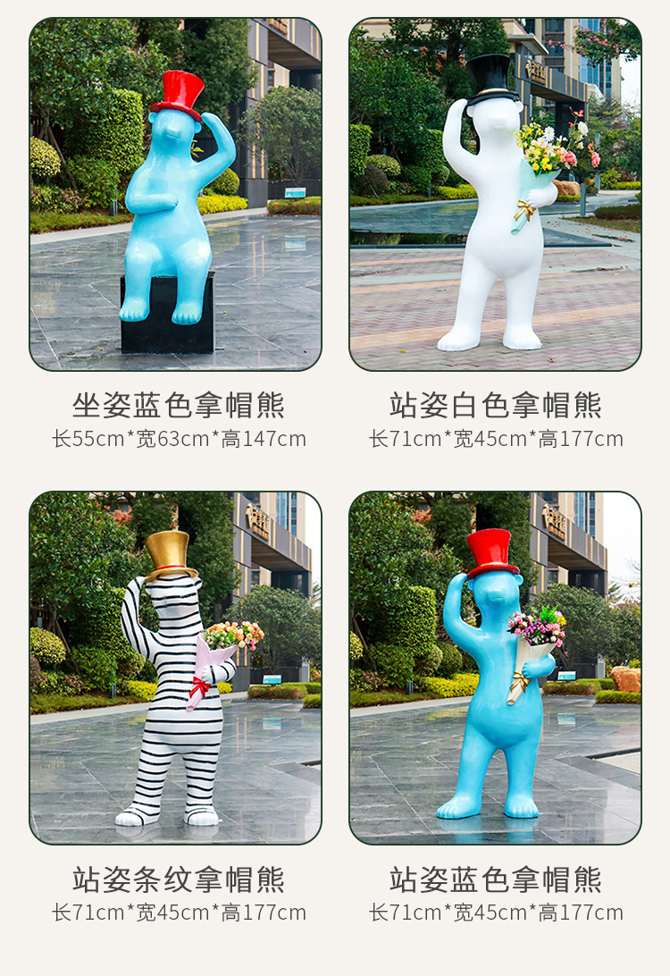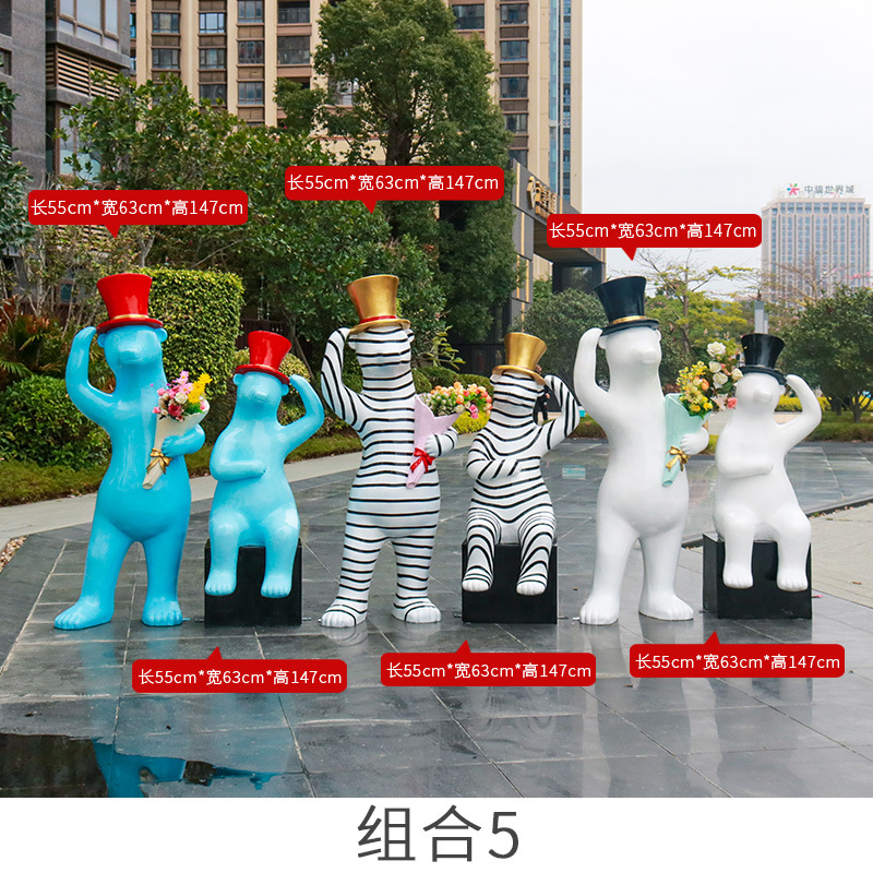 야외 만화 의례 곰 조각 커뮤니티 판매 사무실 호텔 환영 장식 유리 섬유 강화 플라스틱 쇼핑몰 장식스토어 가기