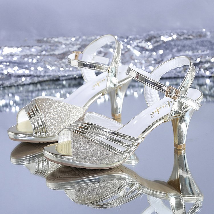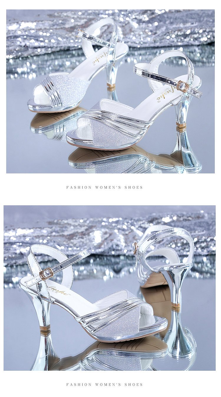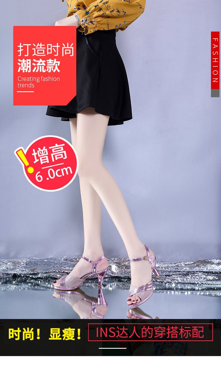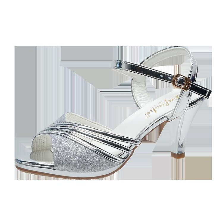 2022 여름 새로운 영국 스타일 두꺼운 힐 피쉬 버클 패션 샌들 여성 라인스톤 패션 하이힐 재고스토어 가기