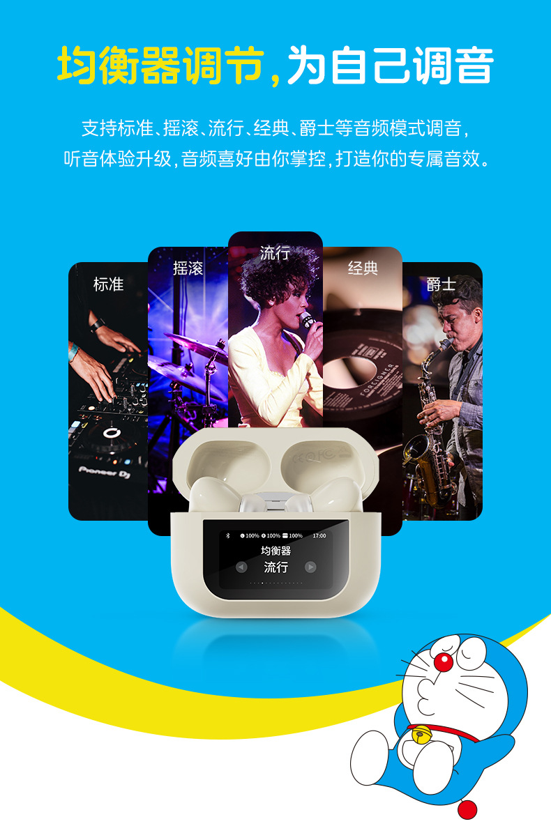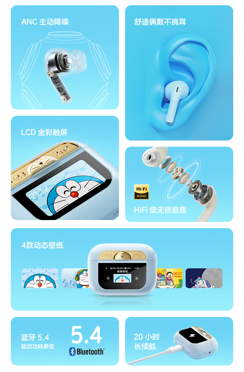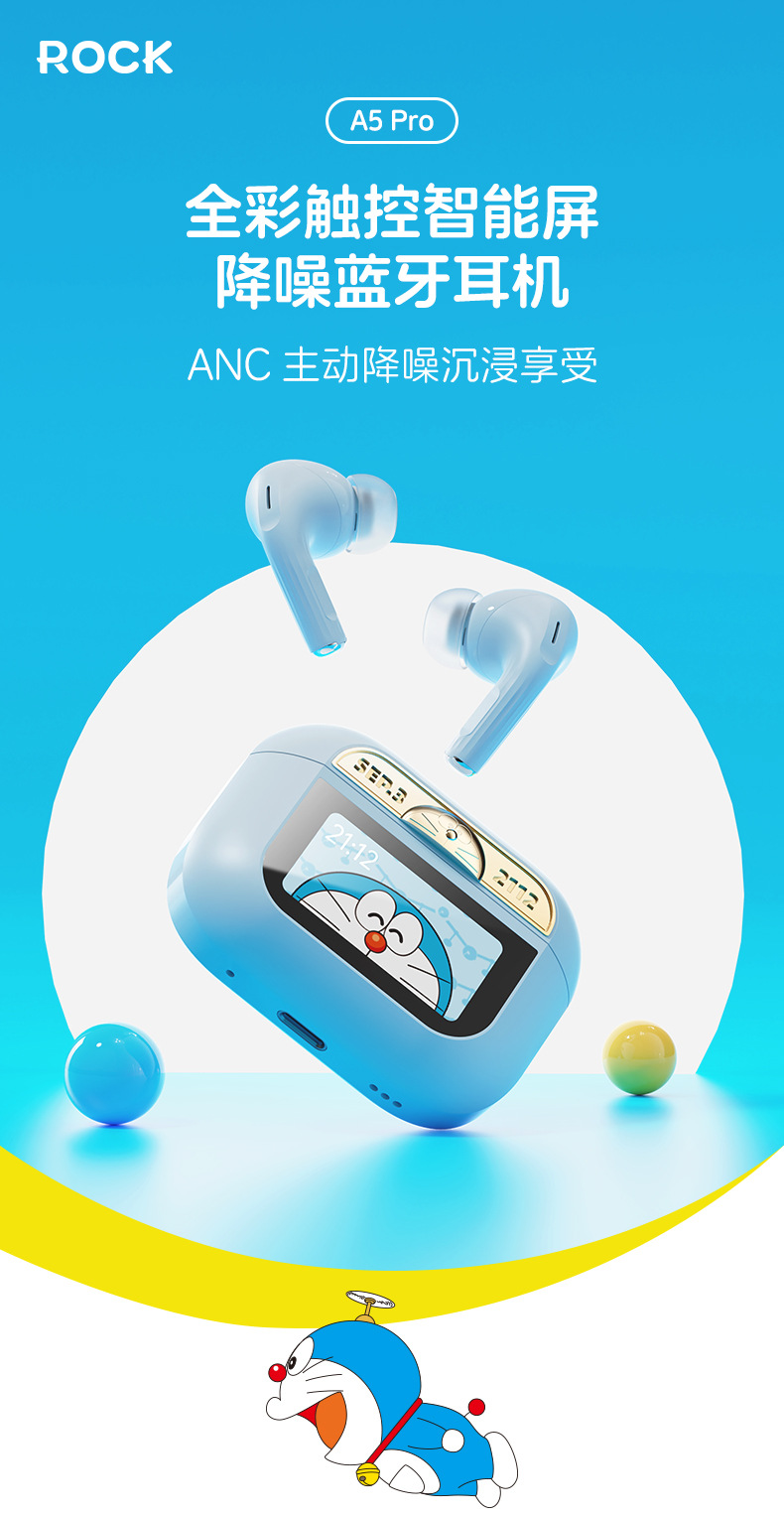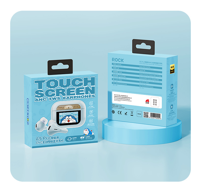 도라에몽 A5 Pro 스마트 스크린 터치 컬러 스크린 이어폰 ANC 능동형 소음 감소 블루투스 헤드셋