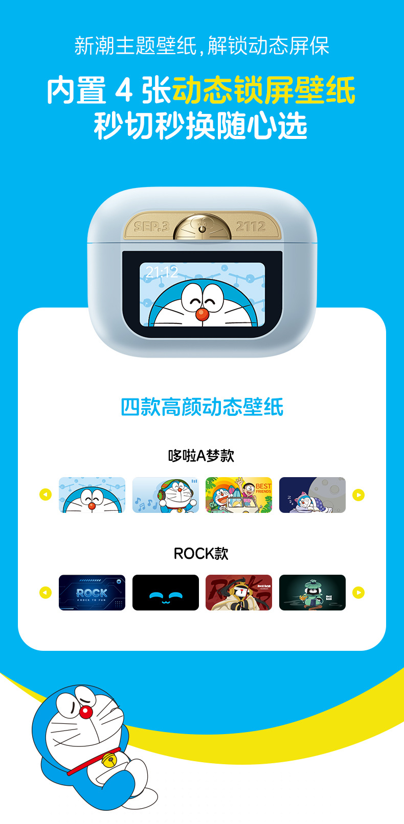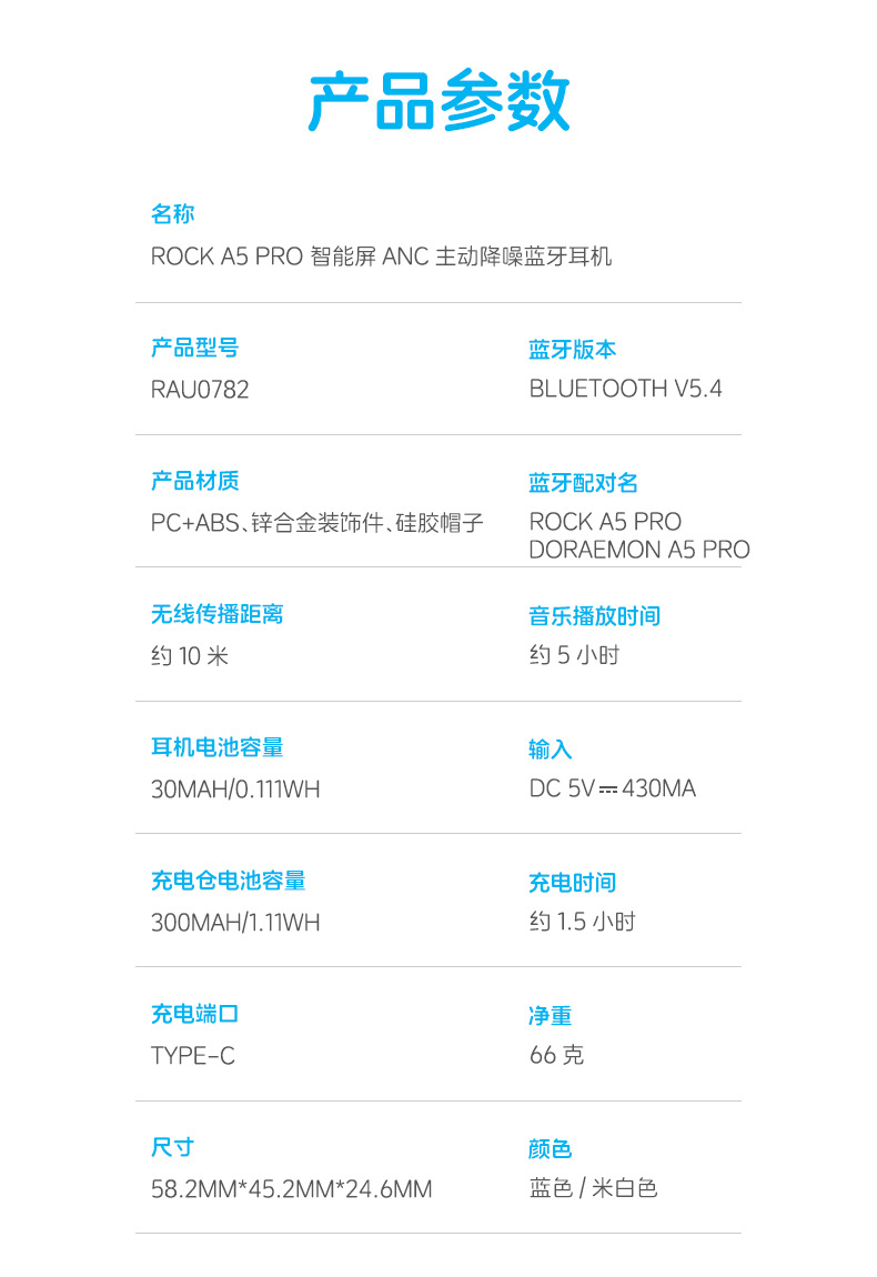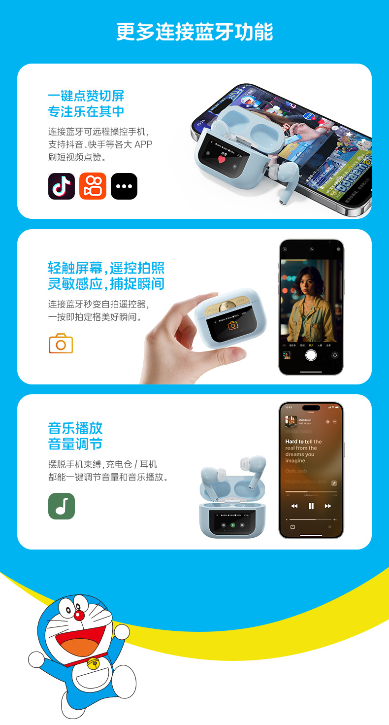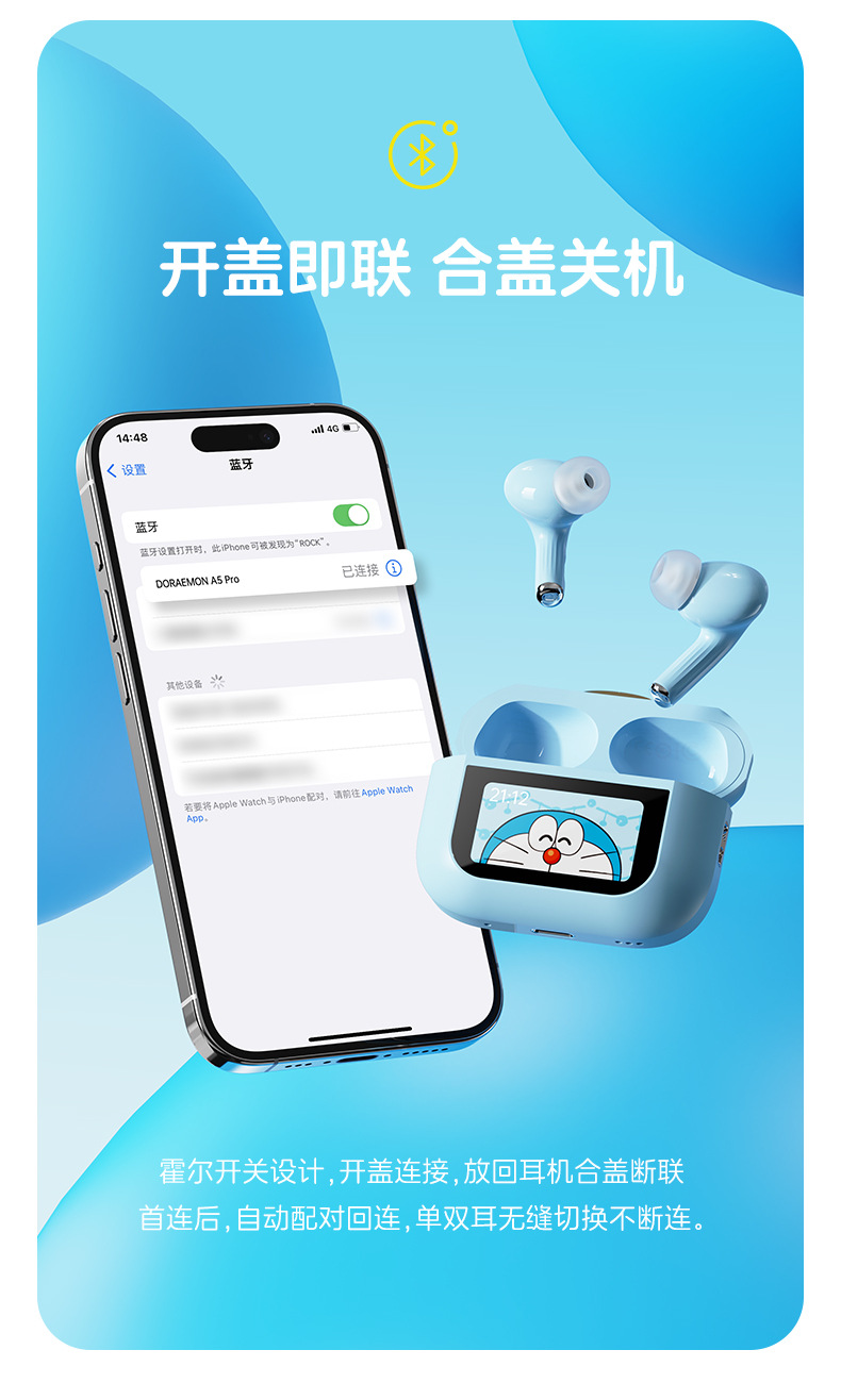 도라에몽 A5 Pro 스마트 스크린 터치 컬러 스크린 이어폰 ANC 능동형 소음 감소 블루투스 헤드셋