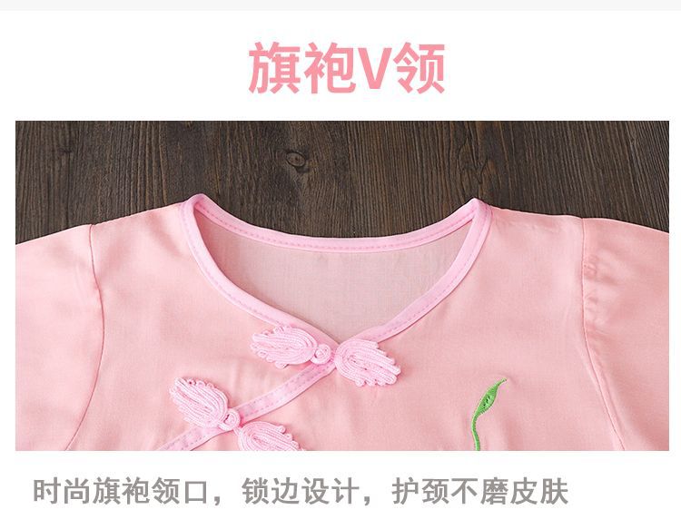 여아복 세트 2025 여름 중국풍 면 실크 에어컨복 반팔 자수 한복 홈웨어 외출복 칠부 바지
