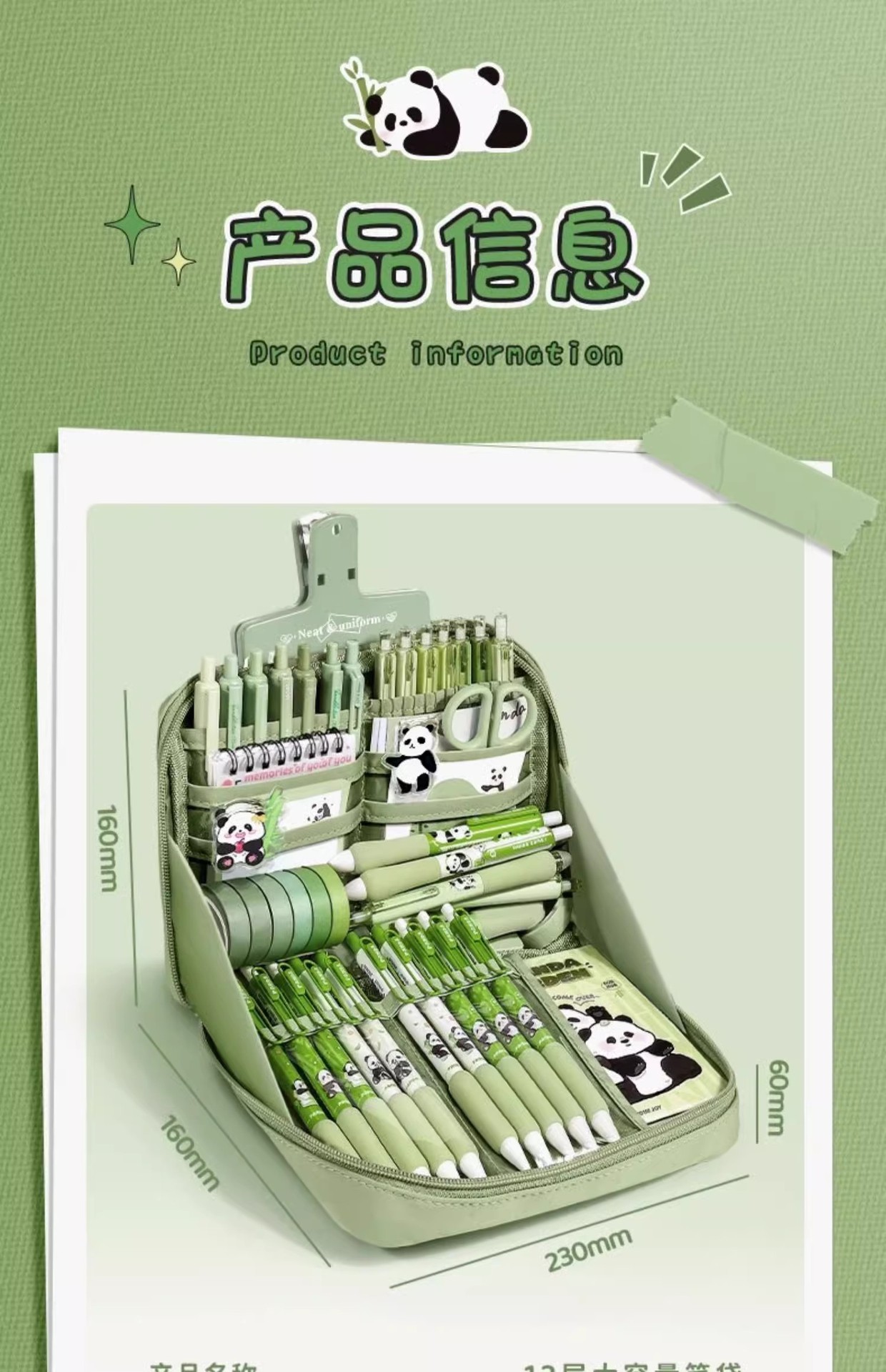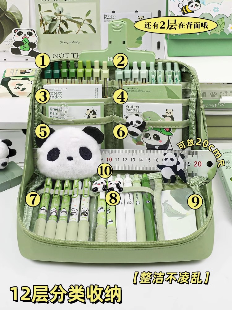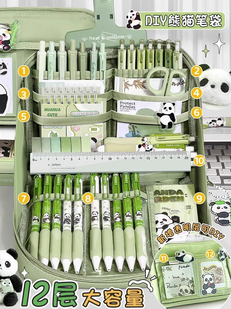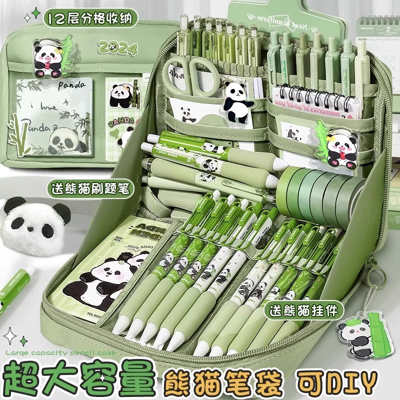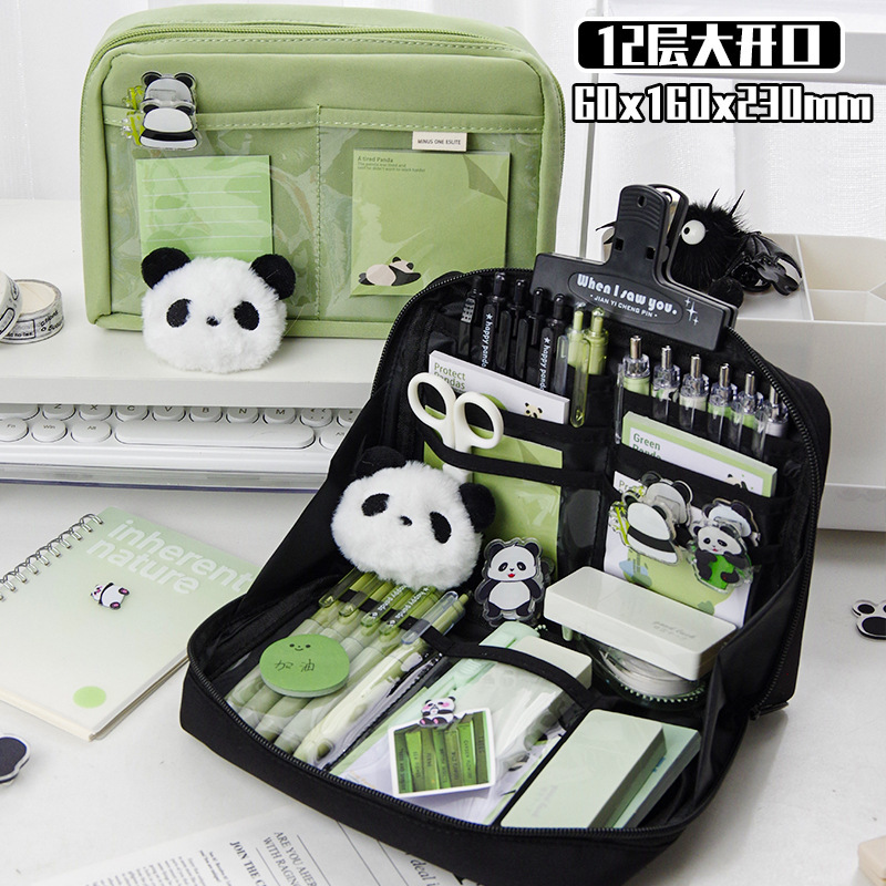 12层熊猫笔袋大容量高颜值文具袋学生学习用品收纳袋简约笔袋 耐脏 ins风创意笔袋