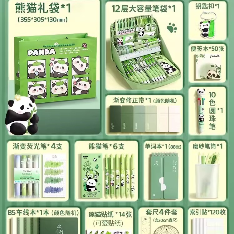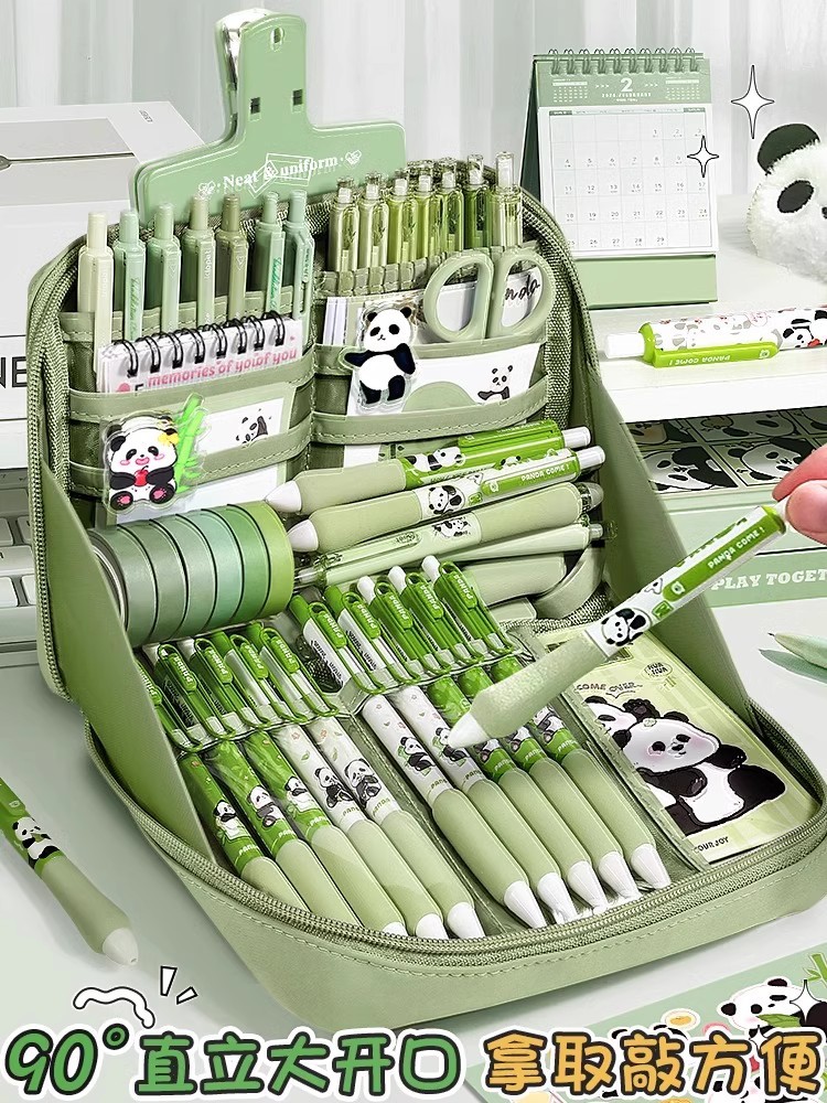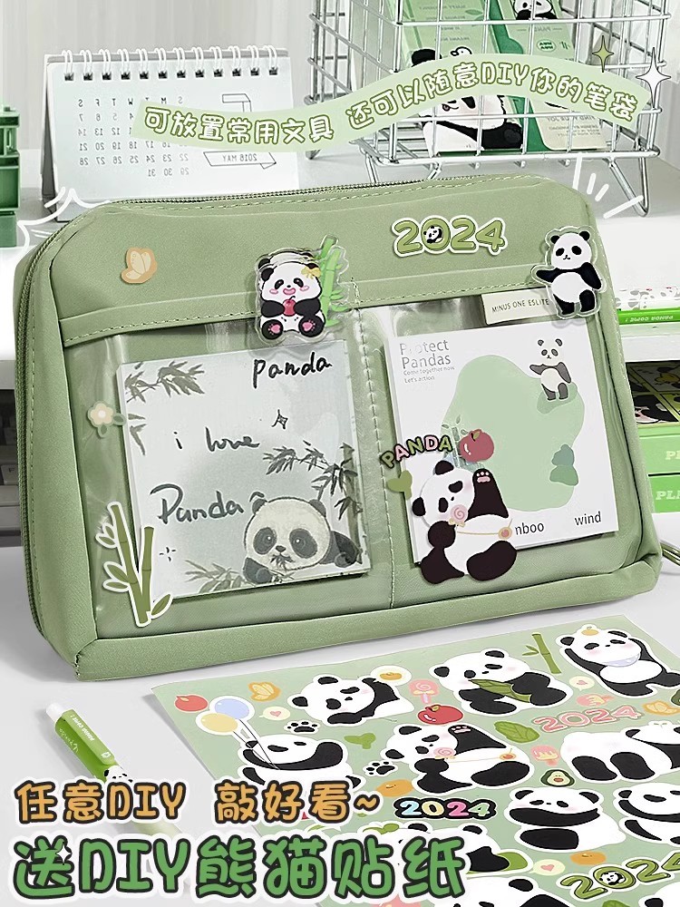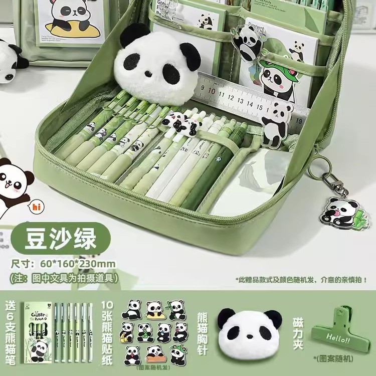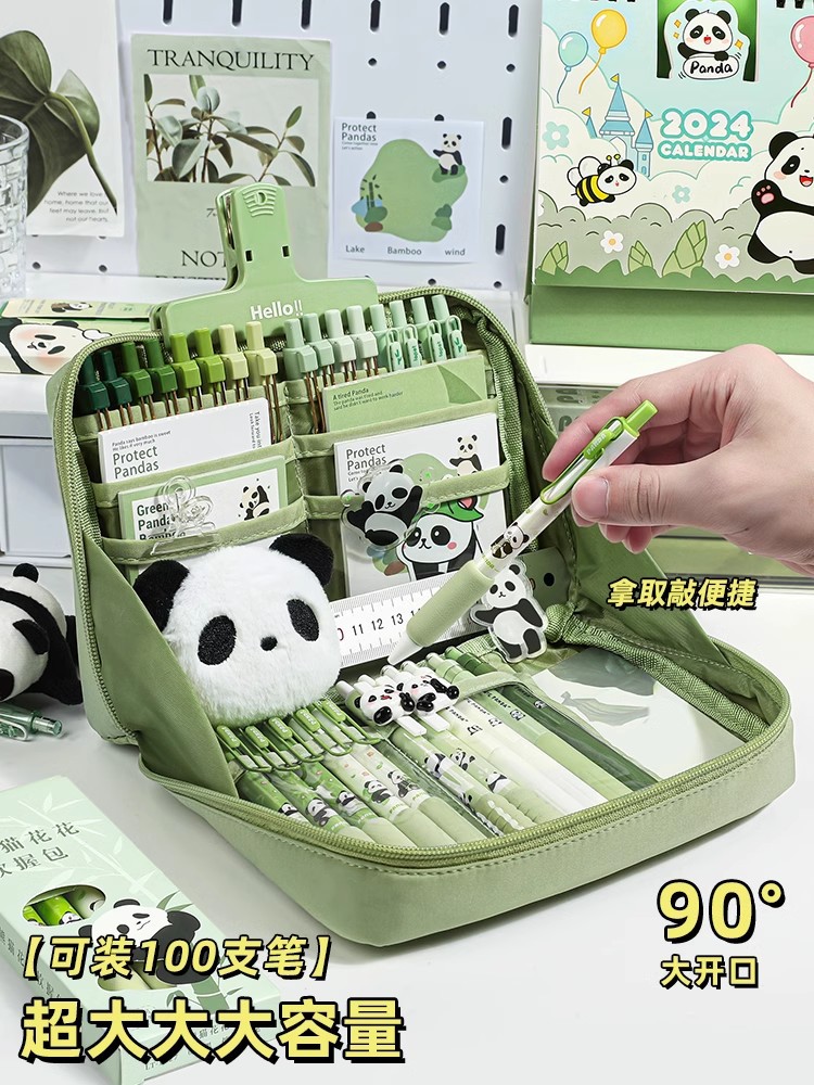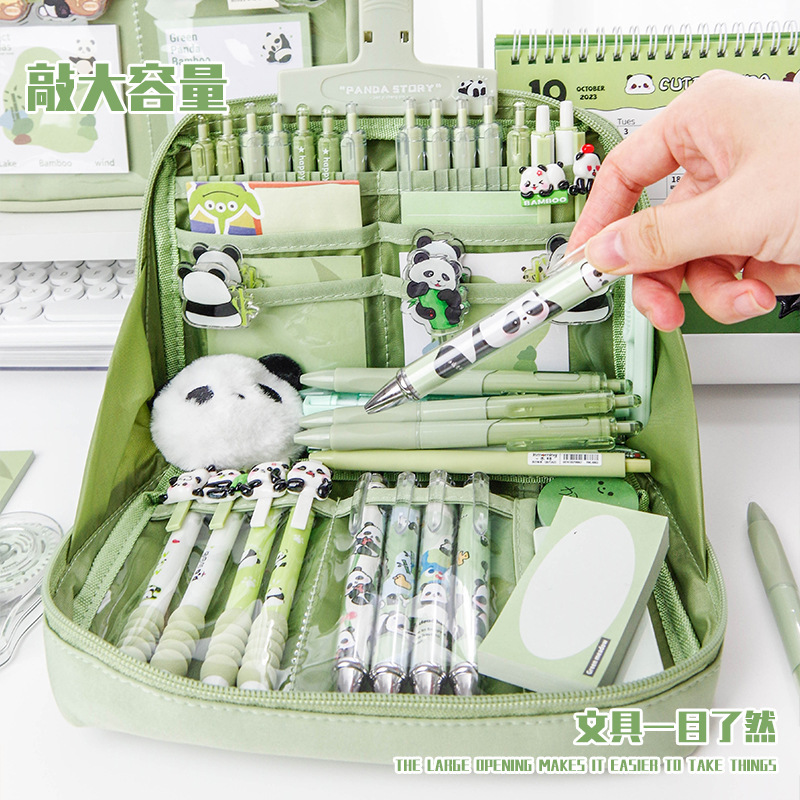 12层熊猫笔袋大容量高颜值文具袋学生学习用品收纳袋简约笔袋 耐脏 ins风创意笔袋
