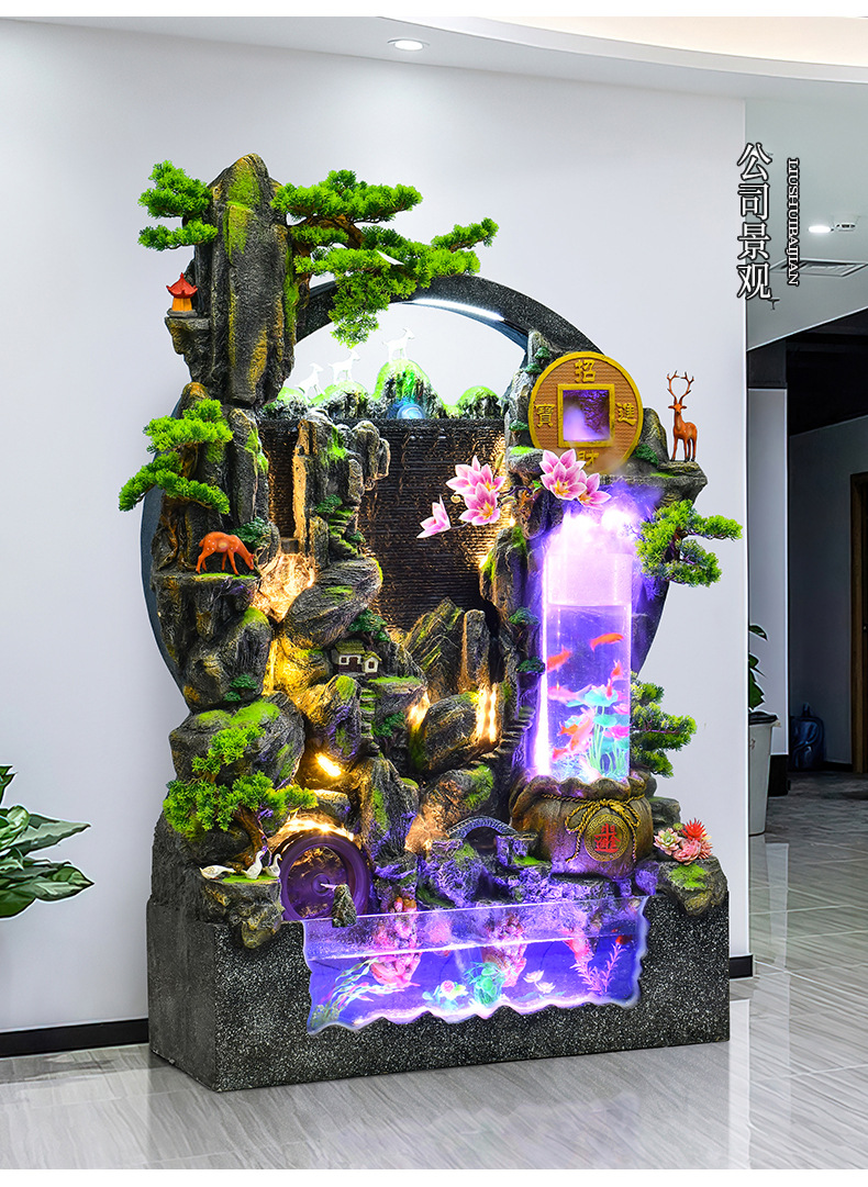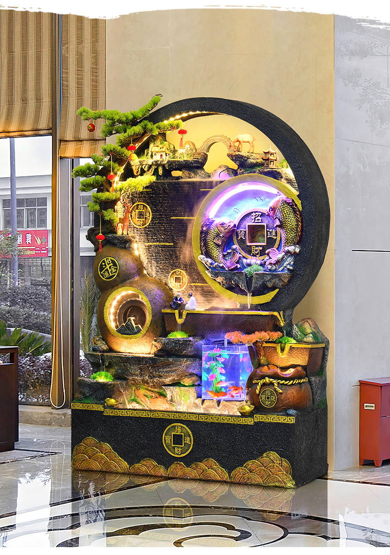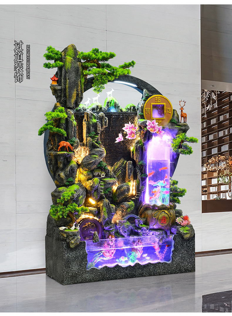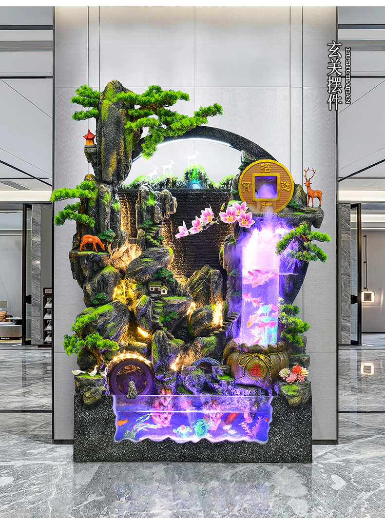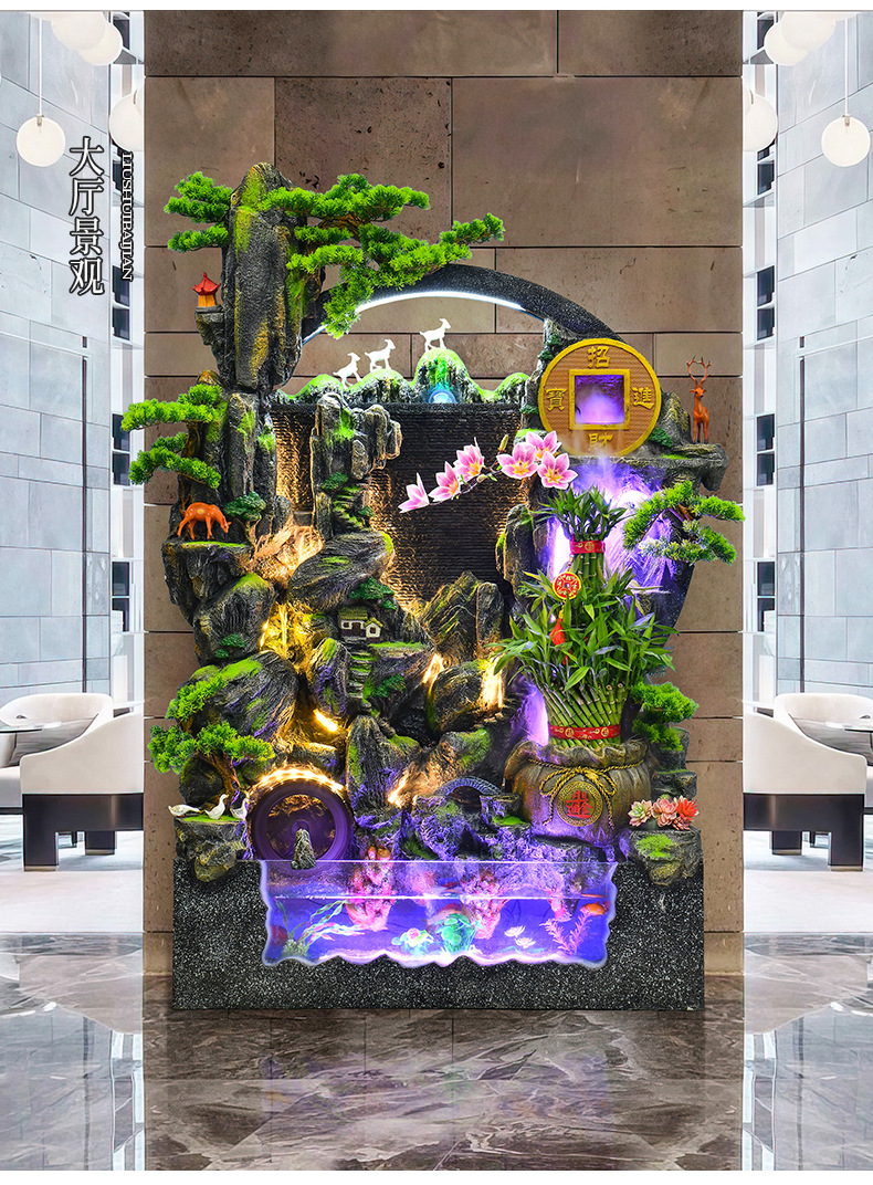 대규모 바위 물고기 탱크 흐르는 물 분수 장식품 부를 만드는 거실 실내 풍경 입구 순환 물 개방 착륙