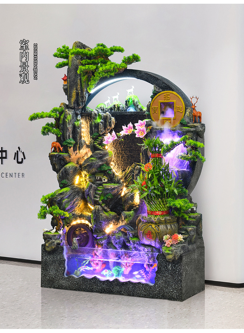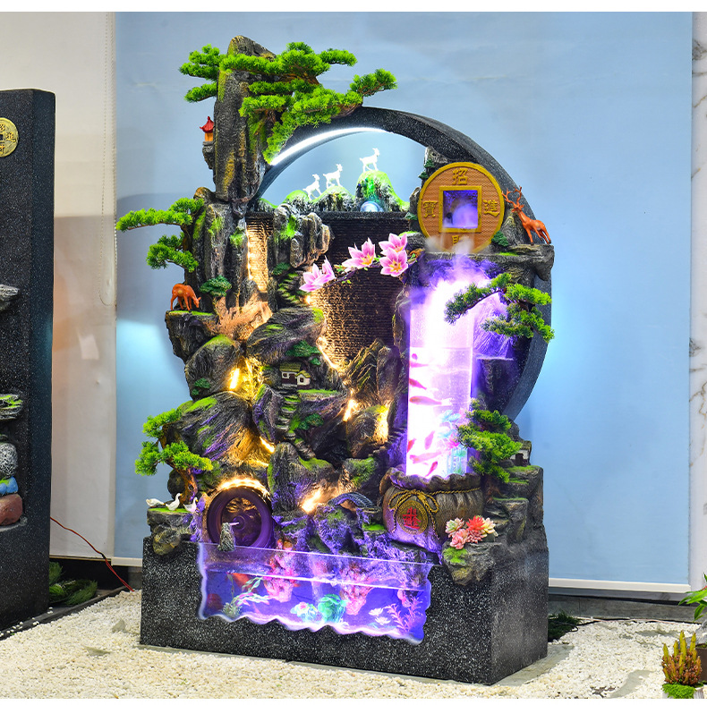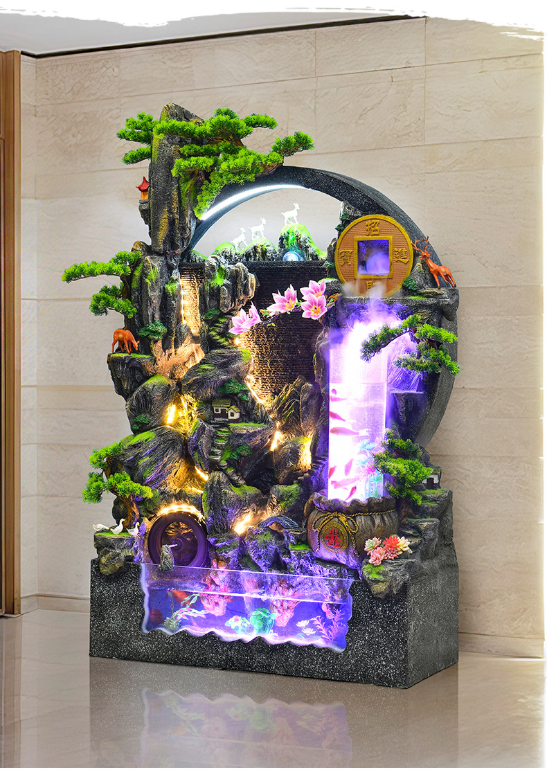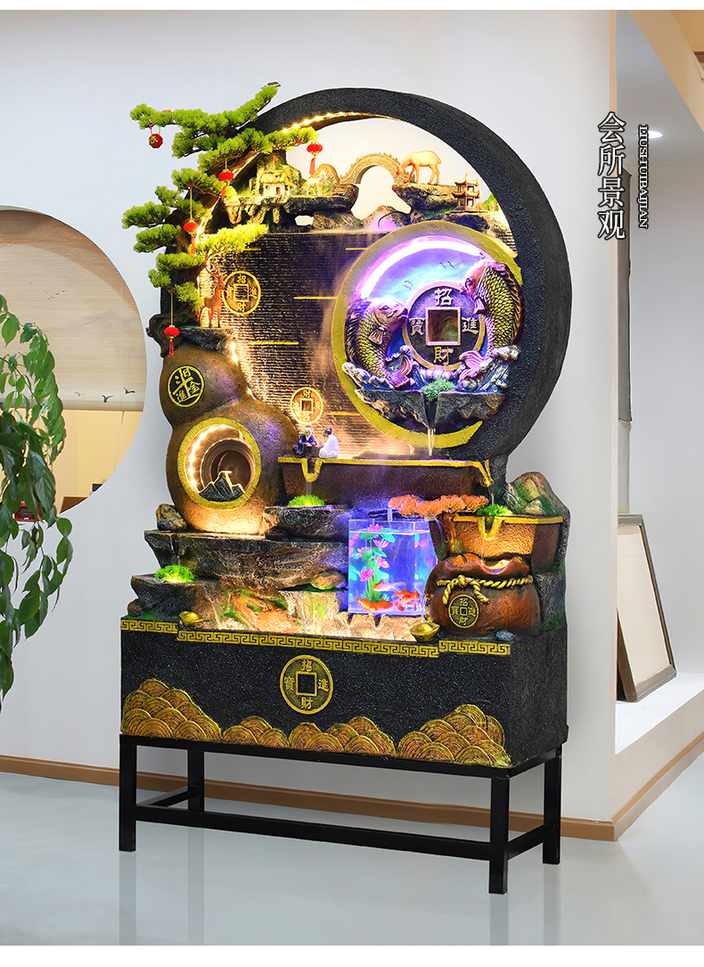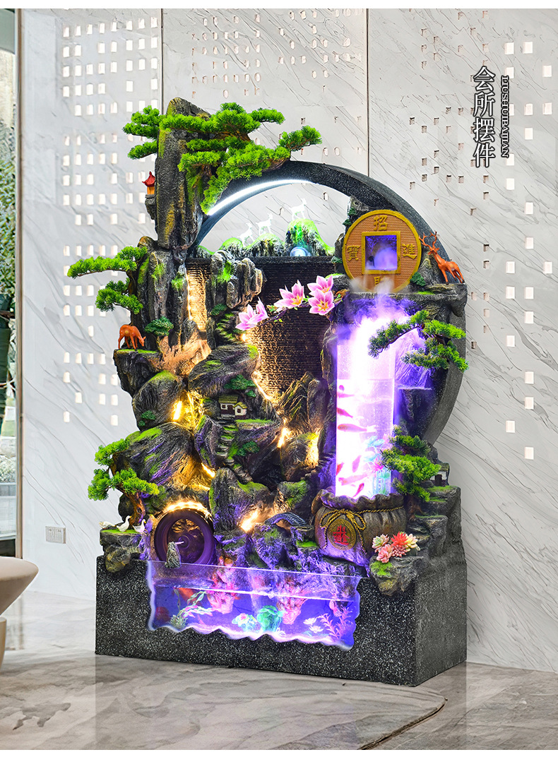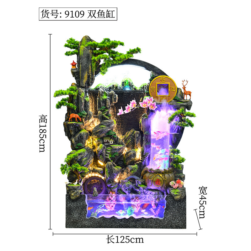 대규모 바위 물고기 탱크 흐르는 물 분수 장식품 부를 만드는 거실 실내 풍경 입구 순환 물 개방 착륙