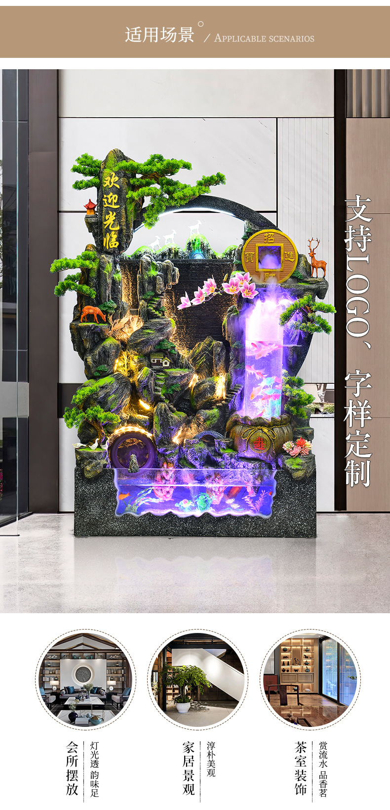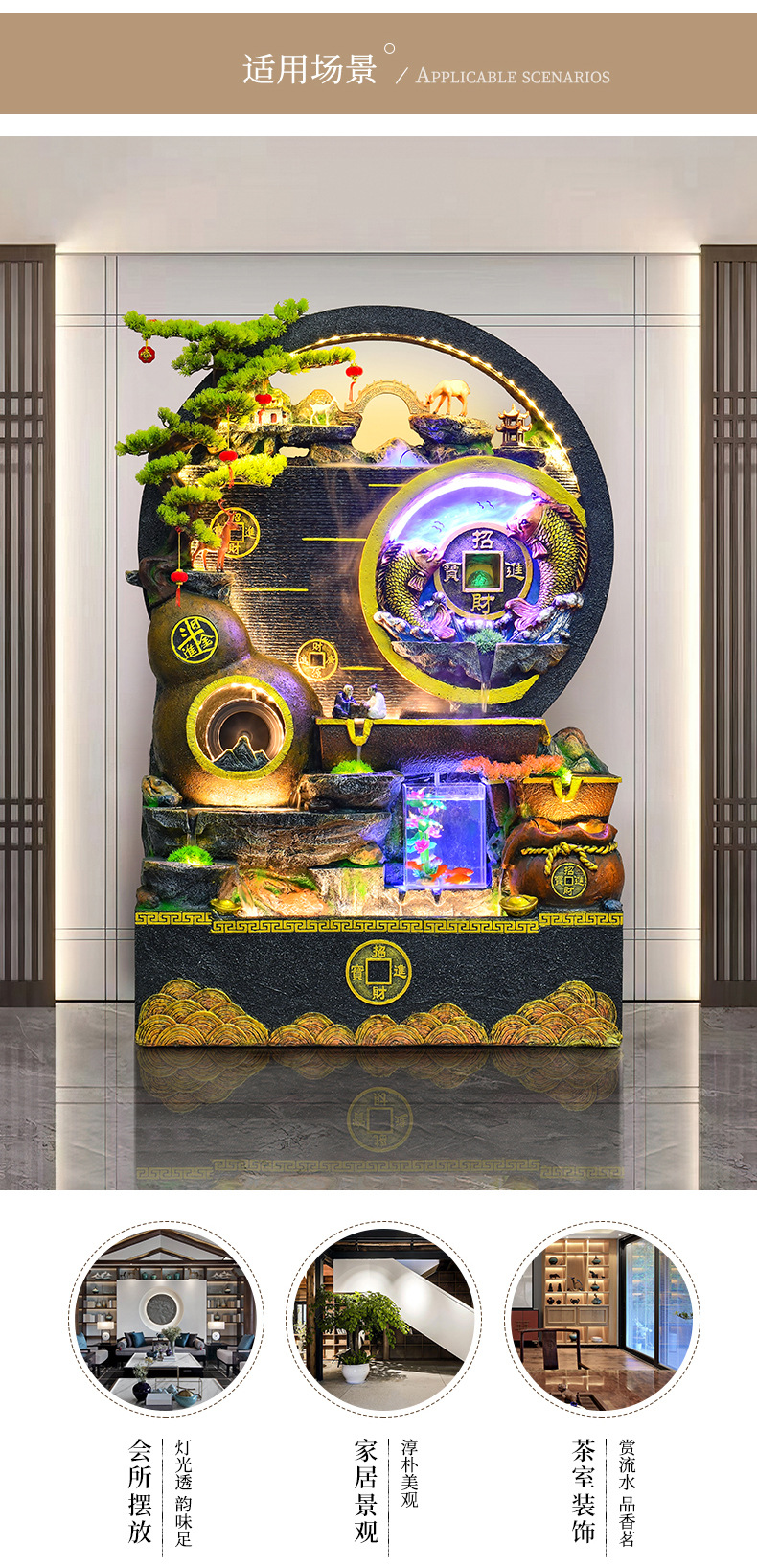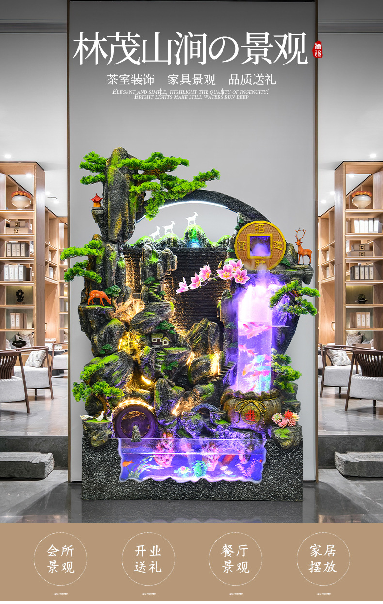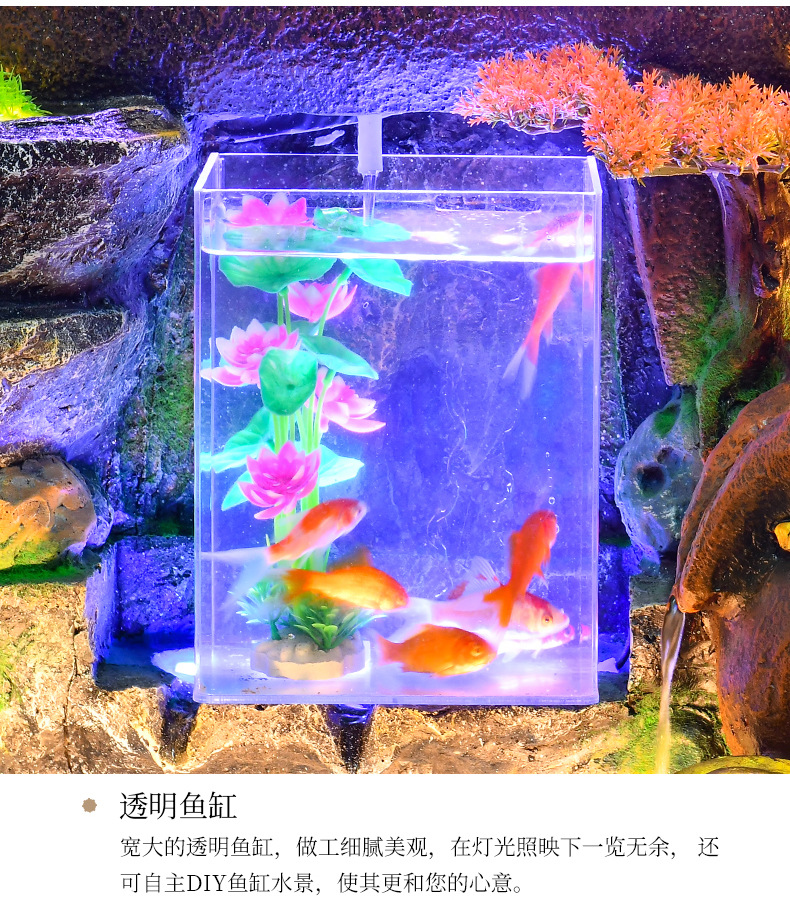 대규모 바위 물고기 탱크 흐르는 물 분수 장식품 부를 만드는 거실 실내 풍경 입구 순환 물 개방 착륙
