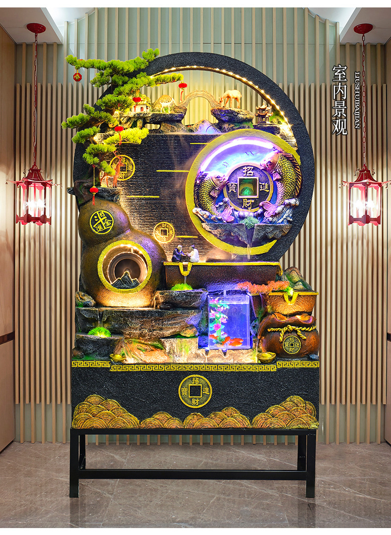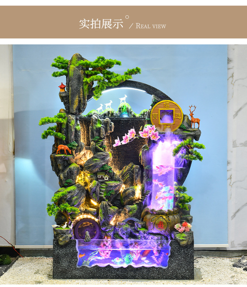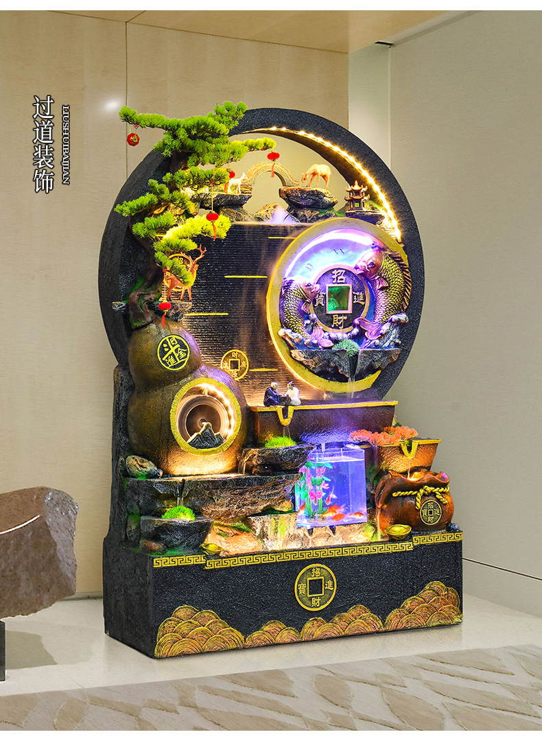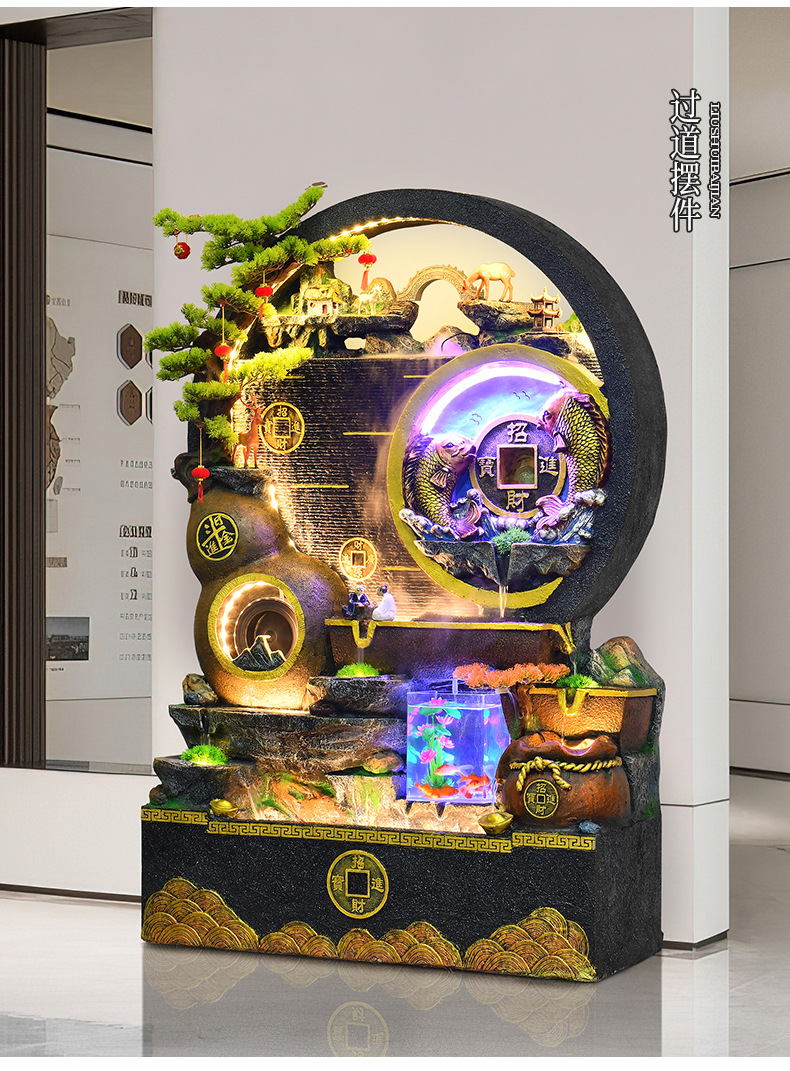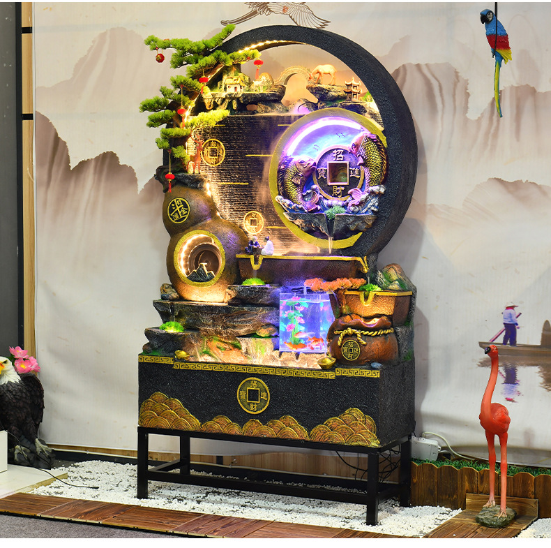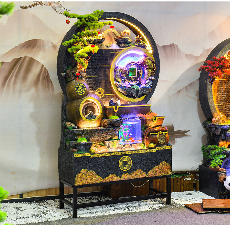 대규모 바위 물고기 탱크 흐르는 물 분수 장식품 부를 만드는 거실 실내 풍경 입구 순환 물 개방 착륙스토어 가기