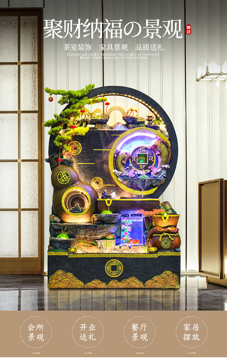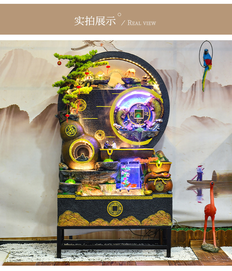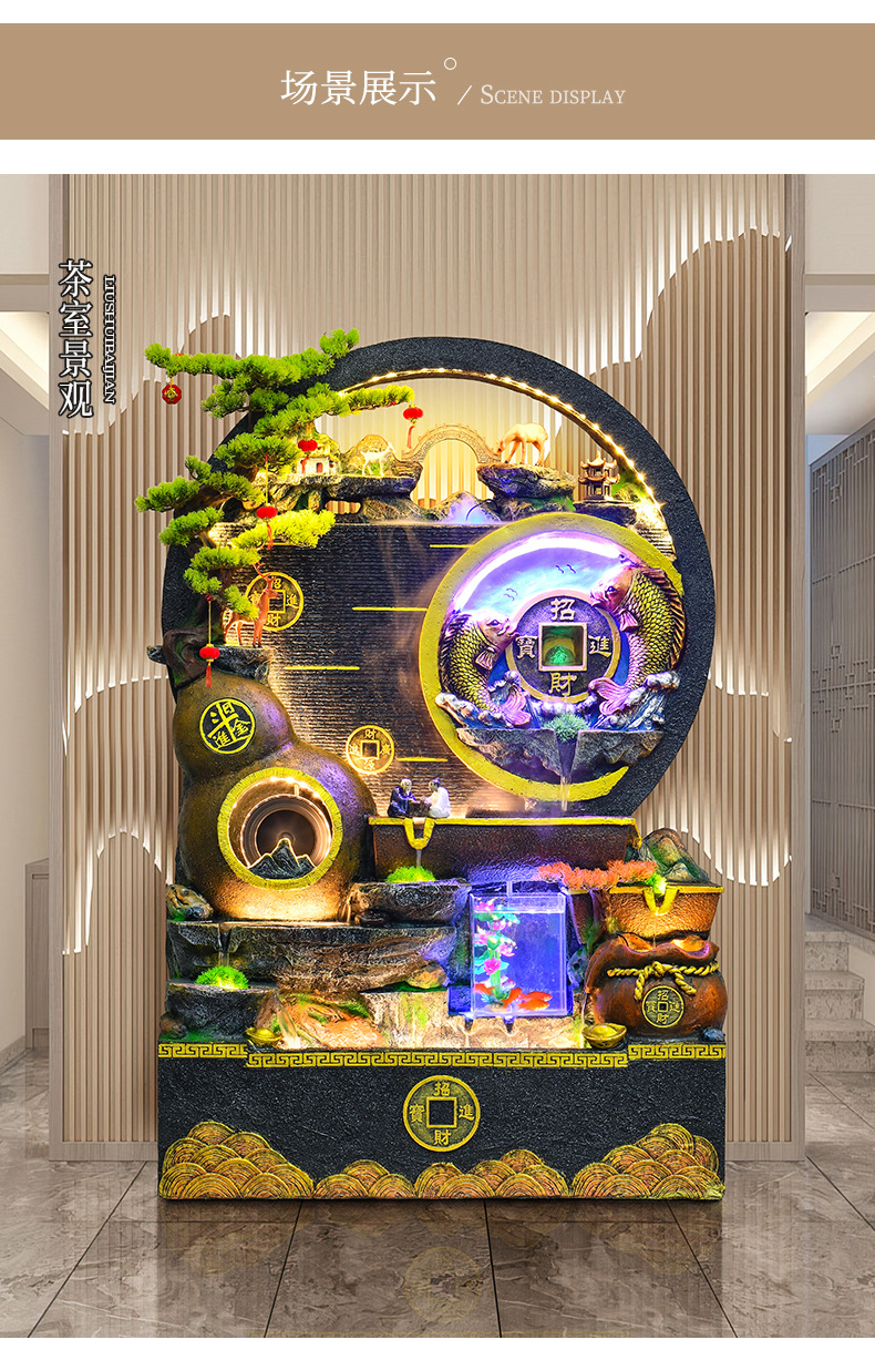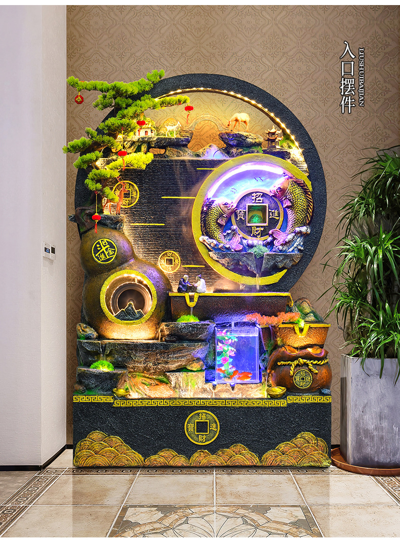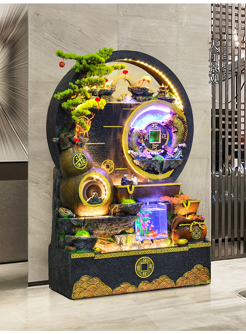 대규모 바위 물고기 탱크 흐르는 물 분수 장식품 부를 만드는 거실 실내 풍경 입구 순환 물 개방 착륙스토어 가기