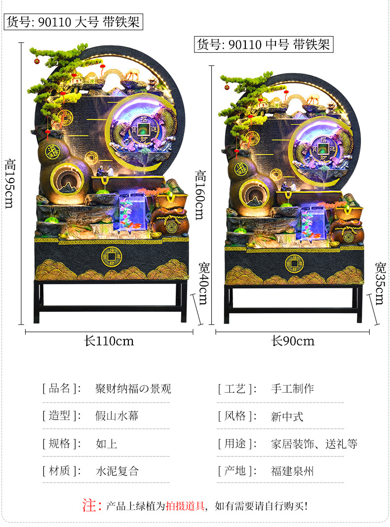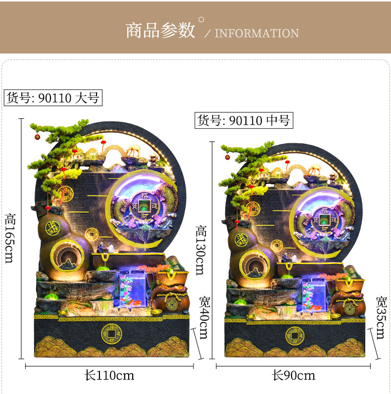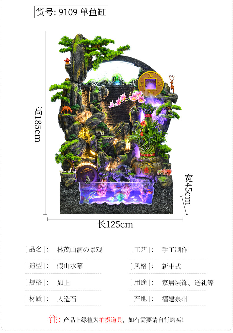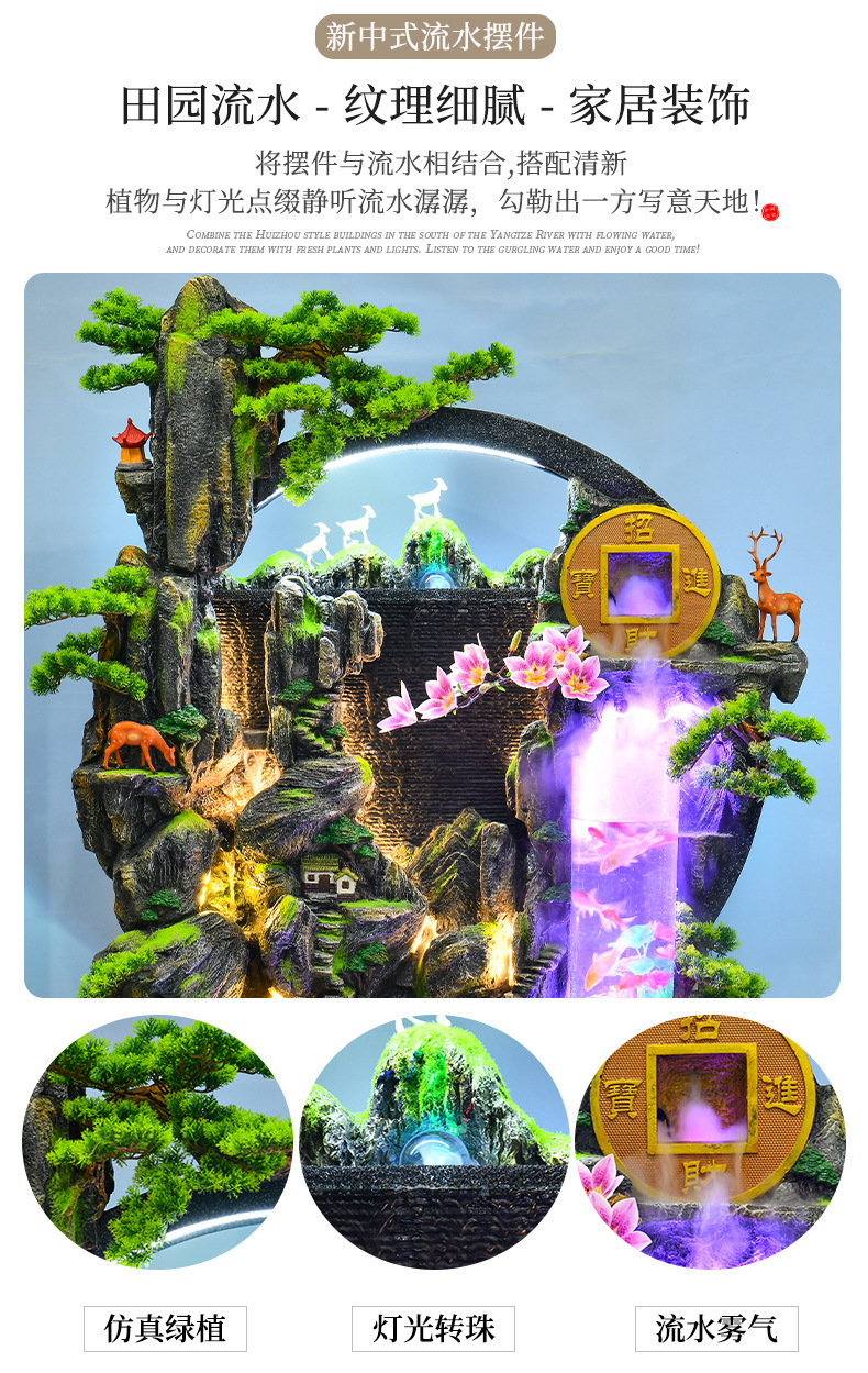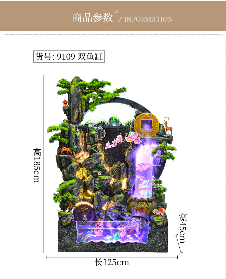 대규모 바위 물고기 탱크 흐르는 물 분수 장식품 부를 만드는 거실 실내 풍경 입구 순환 물 개방 착륙스토어 가기