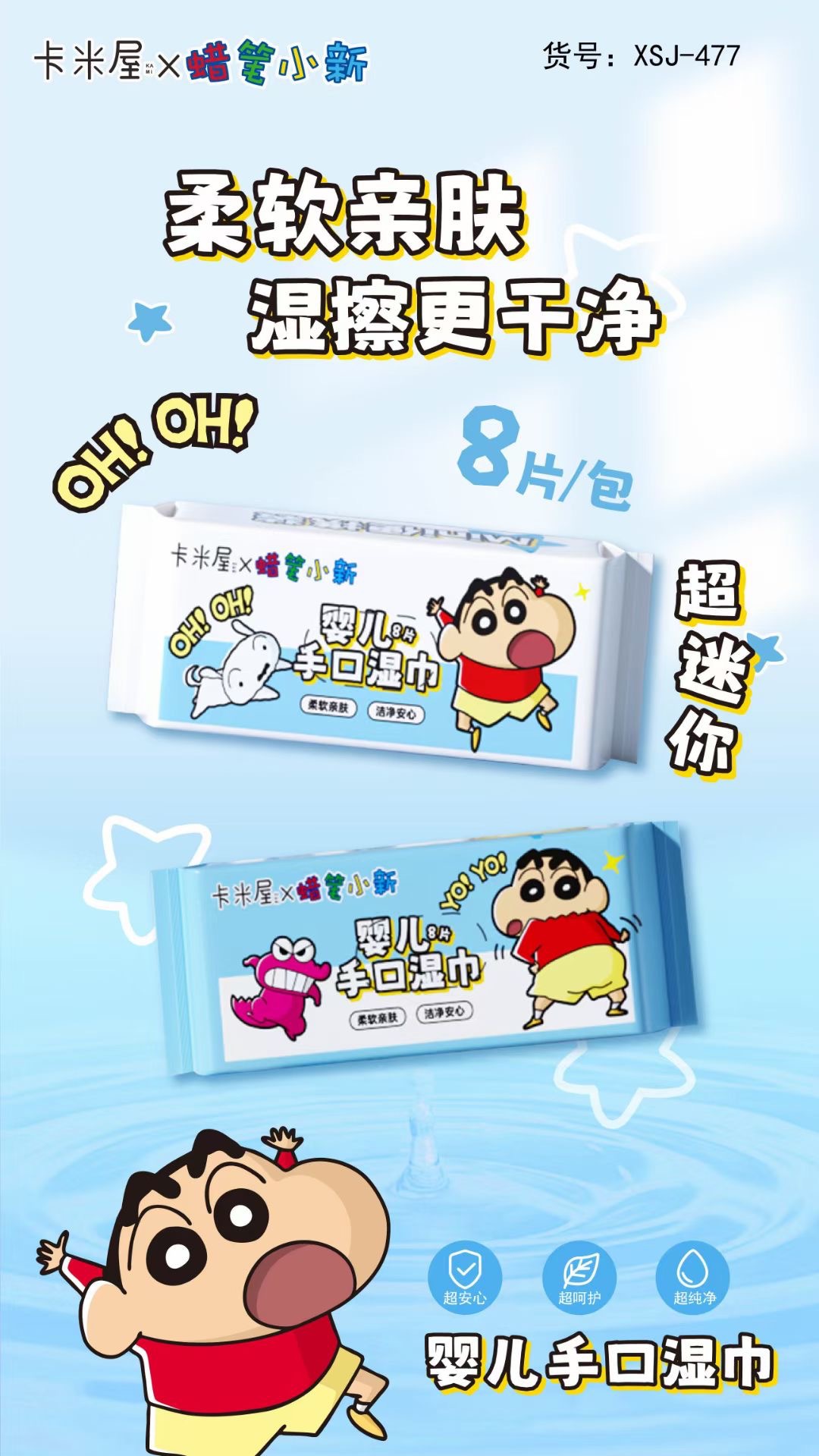 크레용 샤오신 아기 손 물티슈 휴대용 팩 순수한 물티슈 청소 가정용 물티슈 종이 공장 도매스토어 가기