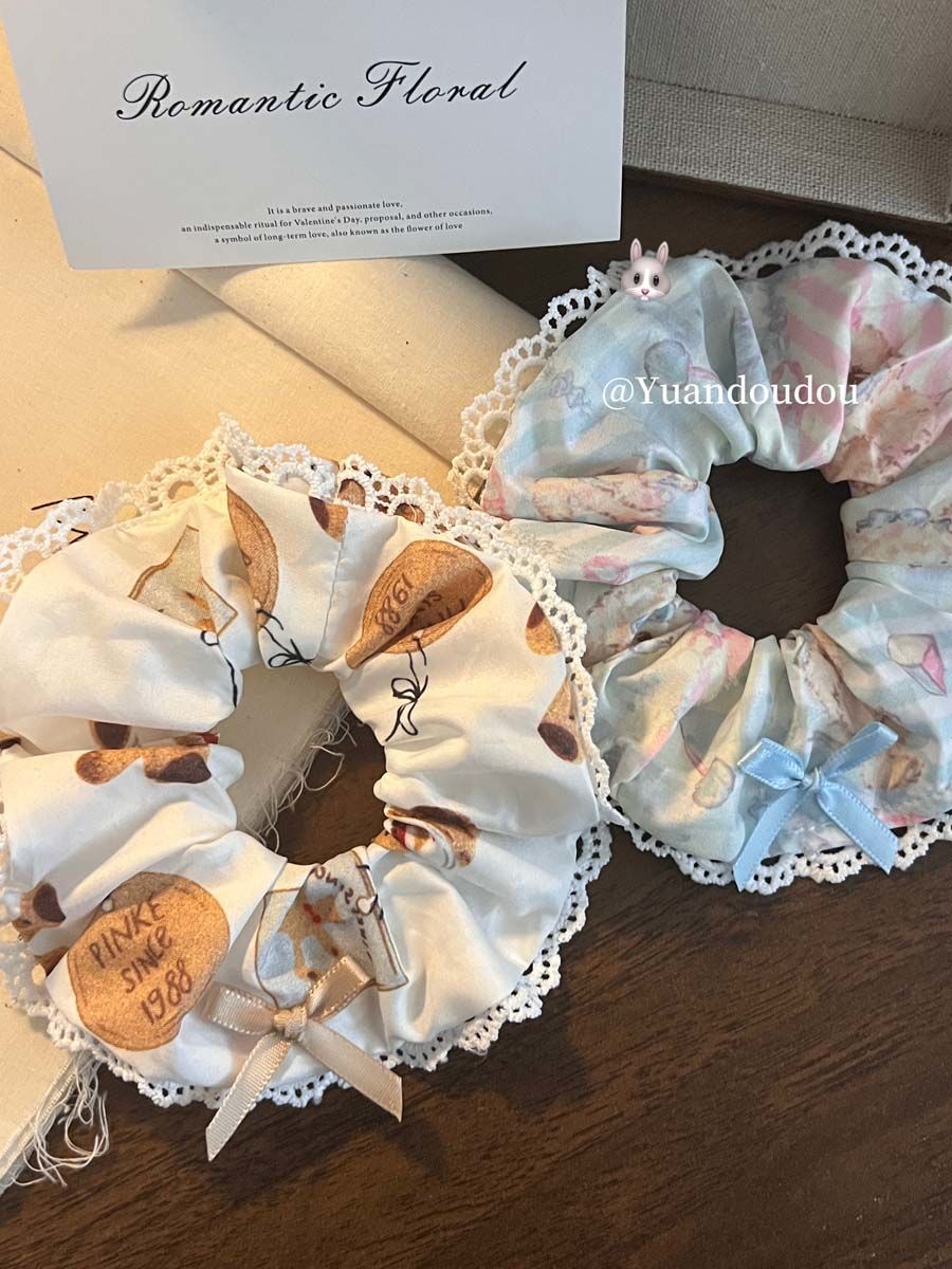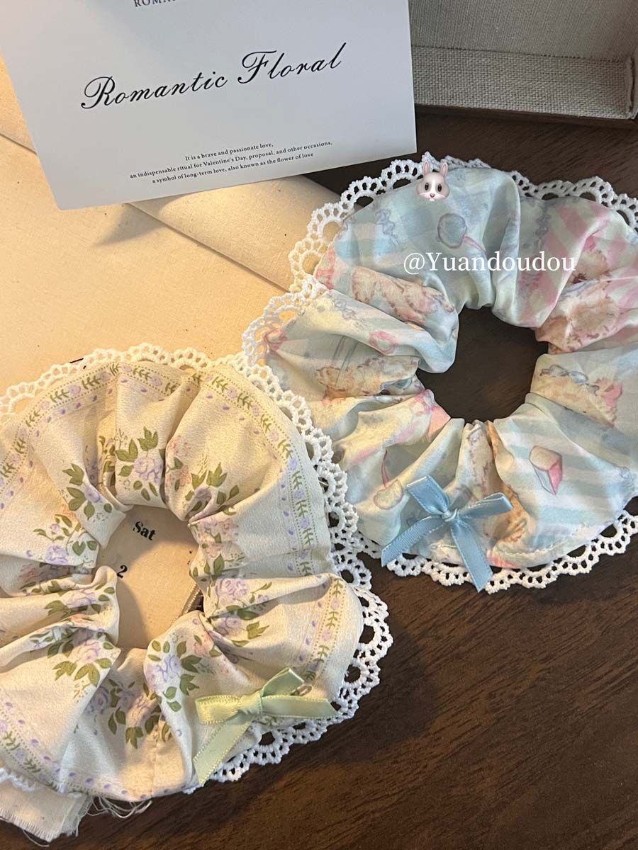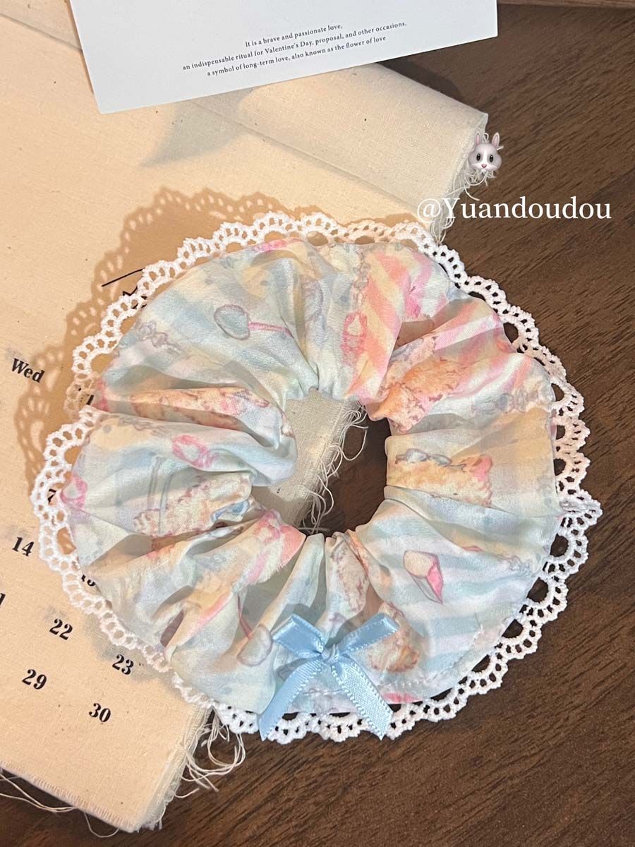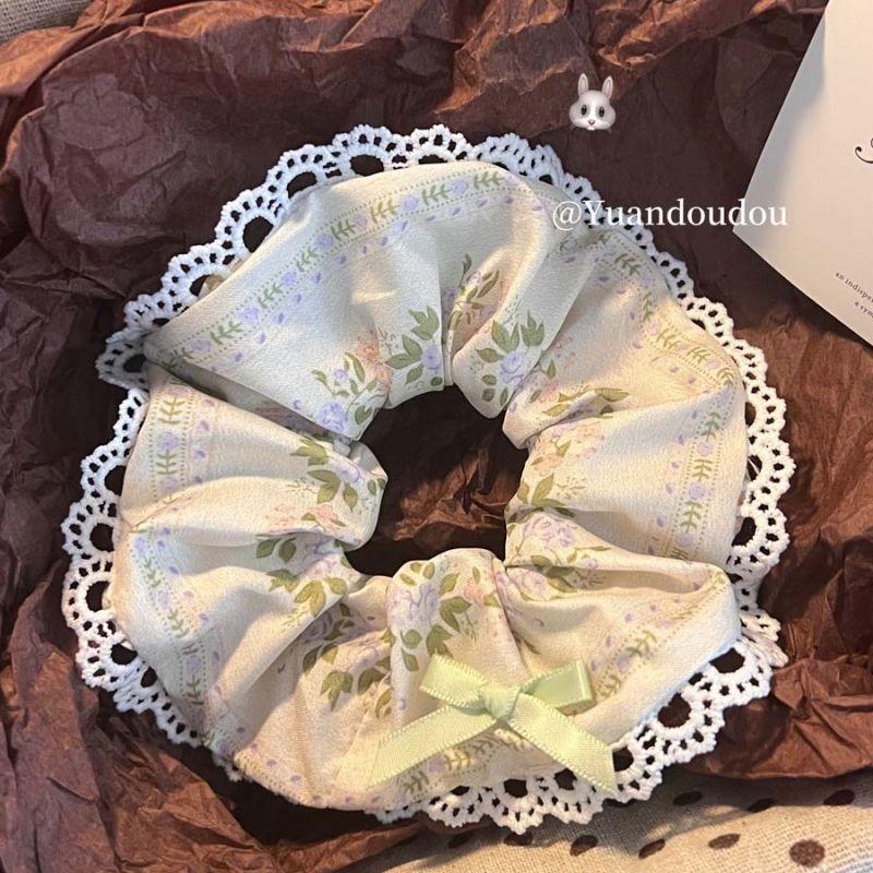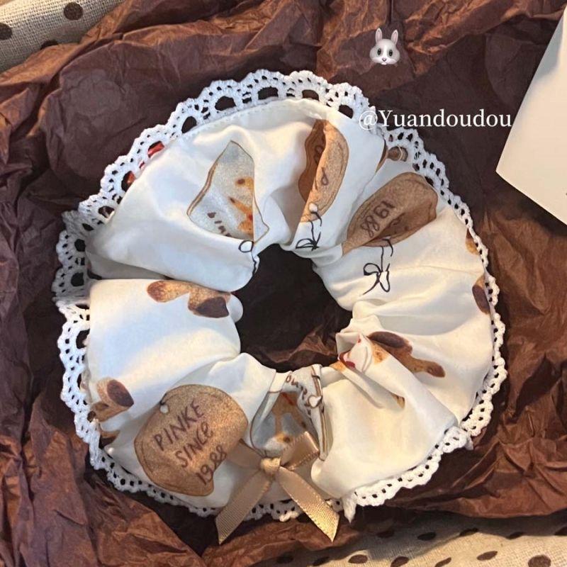 귀여운 봄 유화 고양이 꽃 레이스 가장자리 대형 장내 헤어 링 한국 스위트 패브릭 볼 헤어 로프 헤어 액세서리스토어 가기