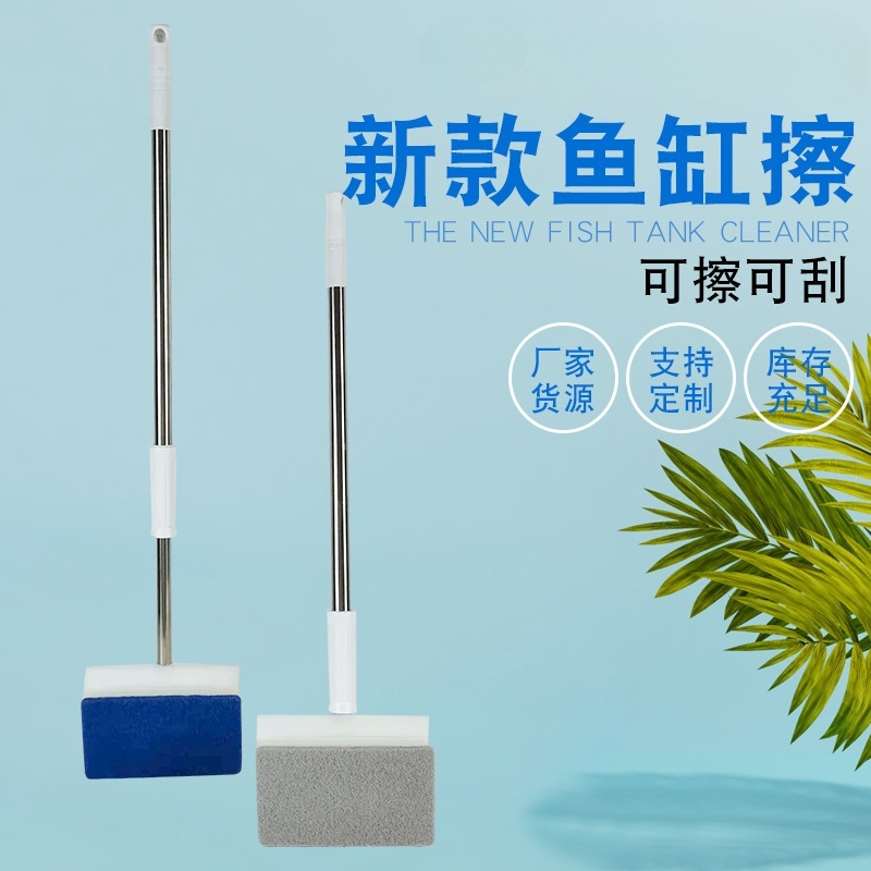 물고기 탱크 브러시 청소 긴 손잡이 내부 벽 청소 유리 스크레이퍼 두껍게 개폐식 수족관 물고기 탱크 브러시스토어 가기