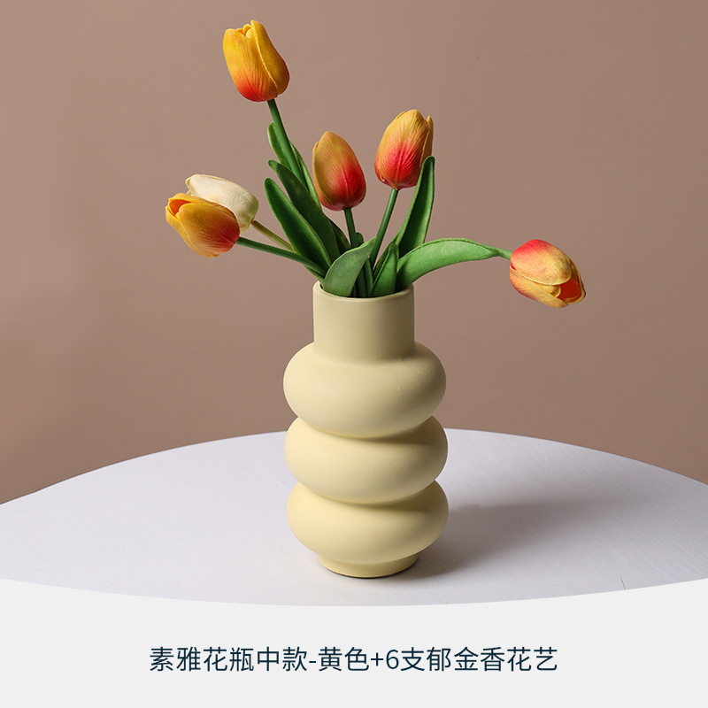 • 심플하고 우아한 중형 꽃병 - 노란색 [무료 꽃꽂이]