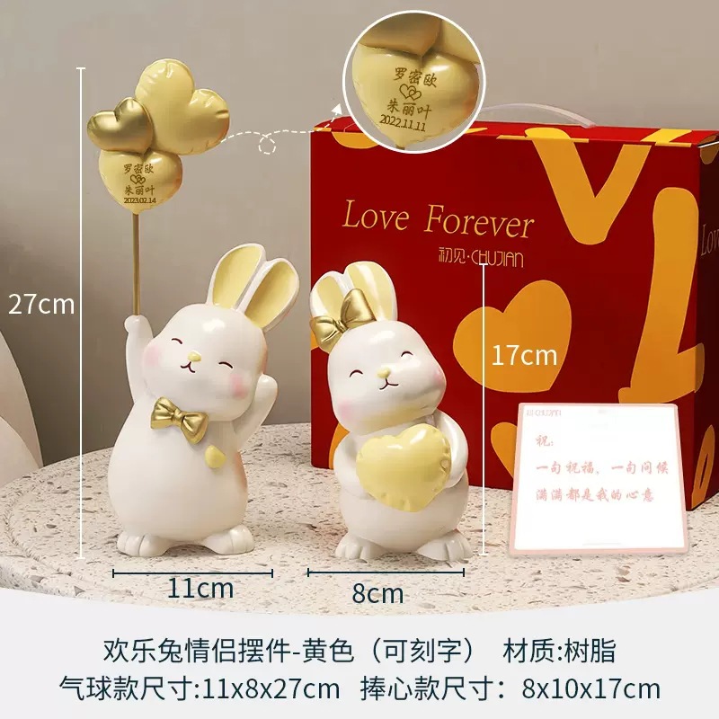 • [풍선 각인] 해피래빗 커플 장식품-옐로우 [대체 연하장]
