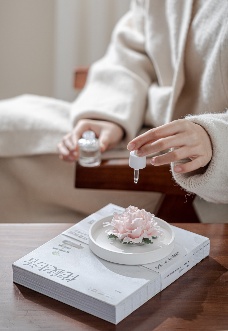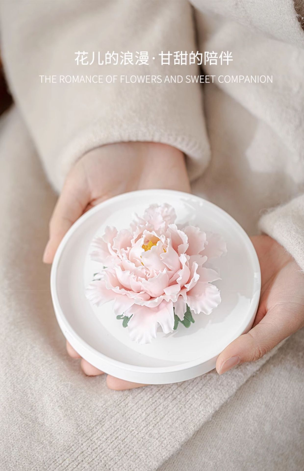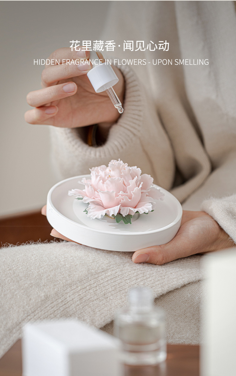 Dehua 손으로 짜낸 모란 장식품 세라믹 꽃 장식품 거실 사무실 기념품 자동차 아로마 테라피 확장 선물 향수 장치
