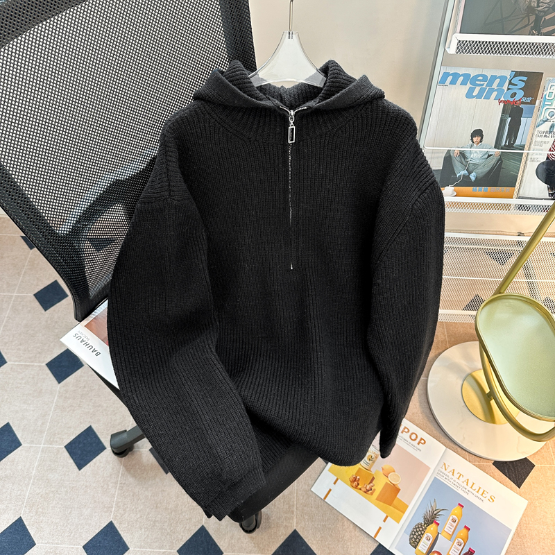 겨울 두꺼운 후드 니트웨어 루즈 인 미국 커플 남성 스웨터 유행과 잘 생긴 하프 지퍼 재킷