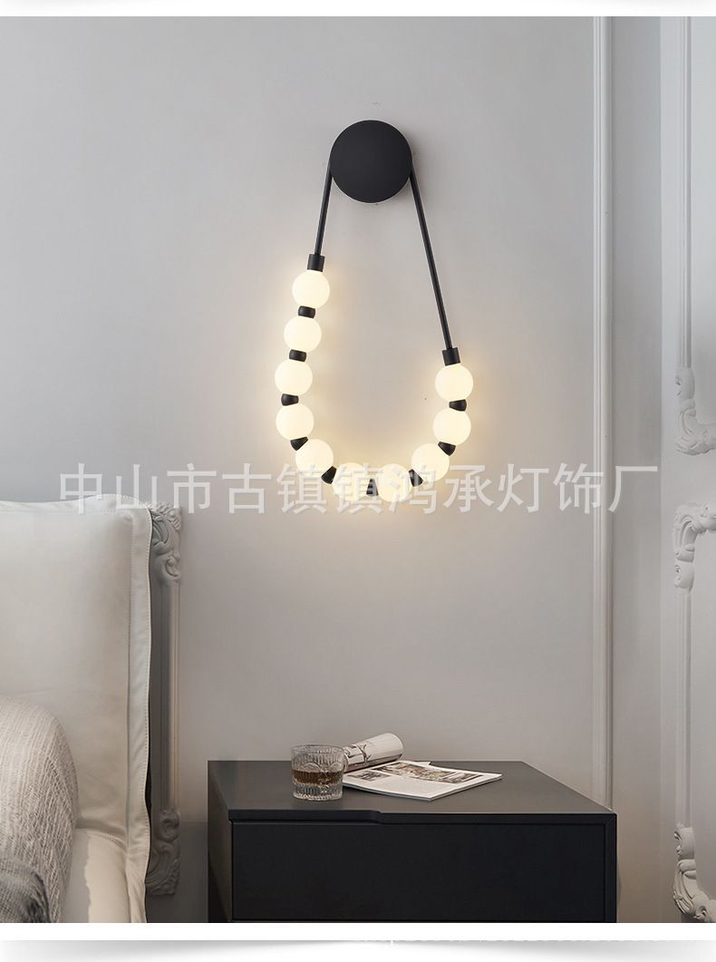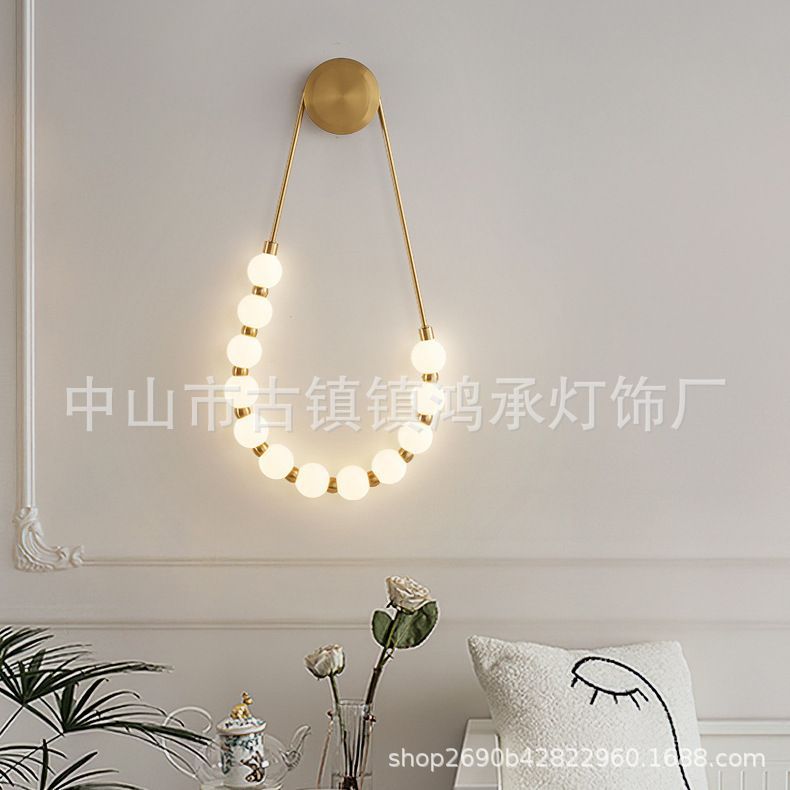 북유럽 모던 심플 크리에이티브 디자이너 진주 목걸이 침대 옆 벽등 거실 배경 벽등 인기 실내등