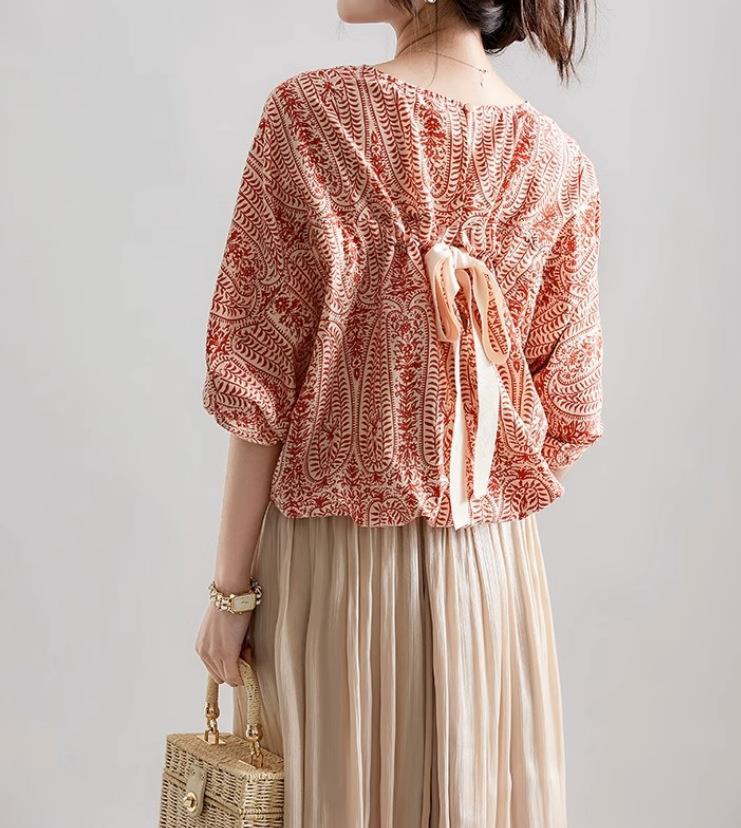 여름 새로운 배꼽 덮기 최고 여성 상쾌한 느슨한 박쥐 소매 다시 레이스 업 활 꽃 셔츠 탑