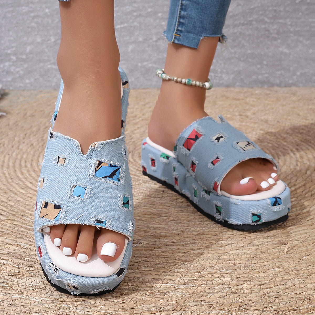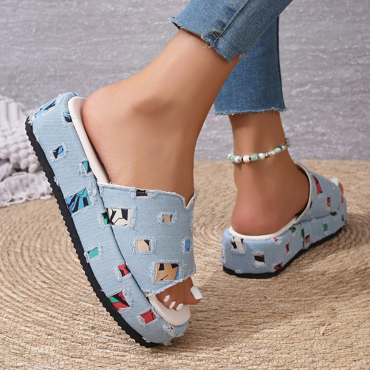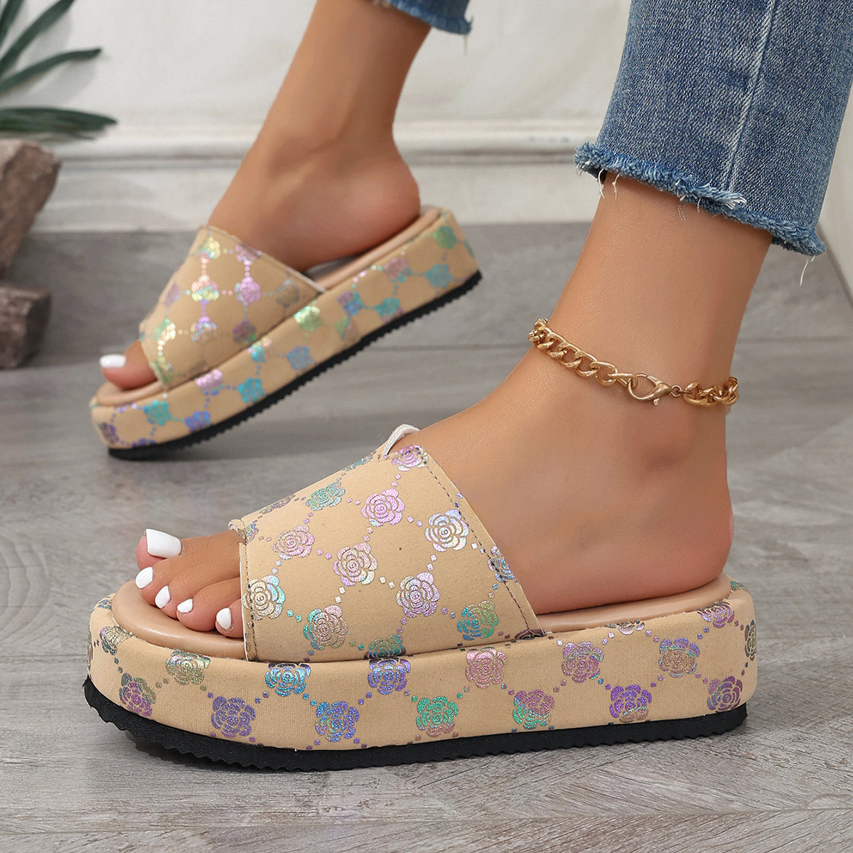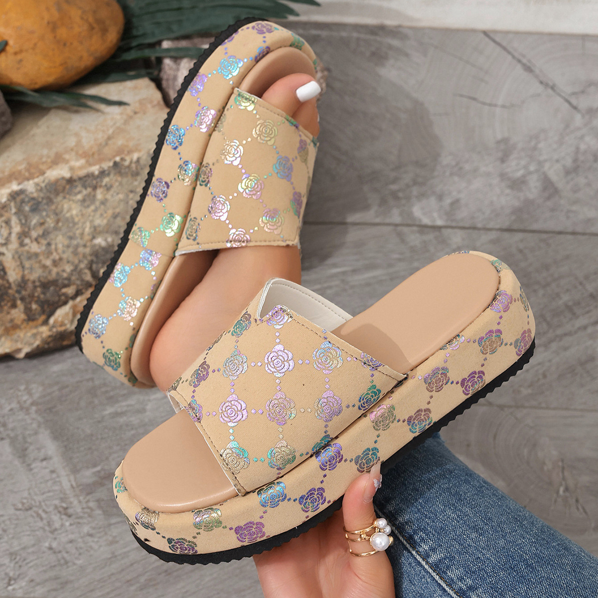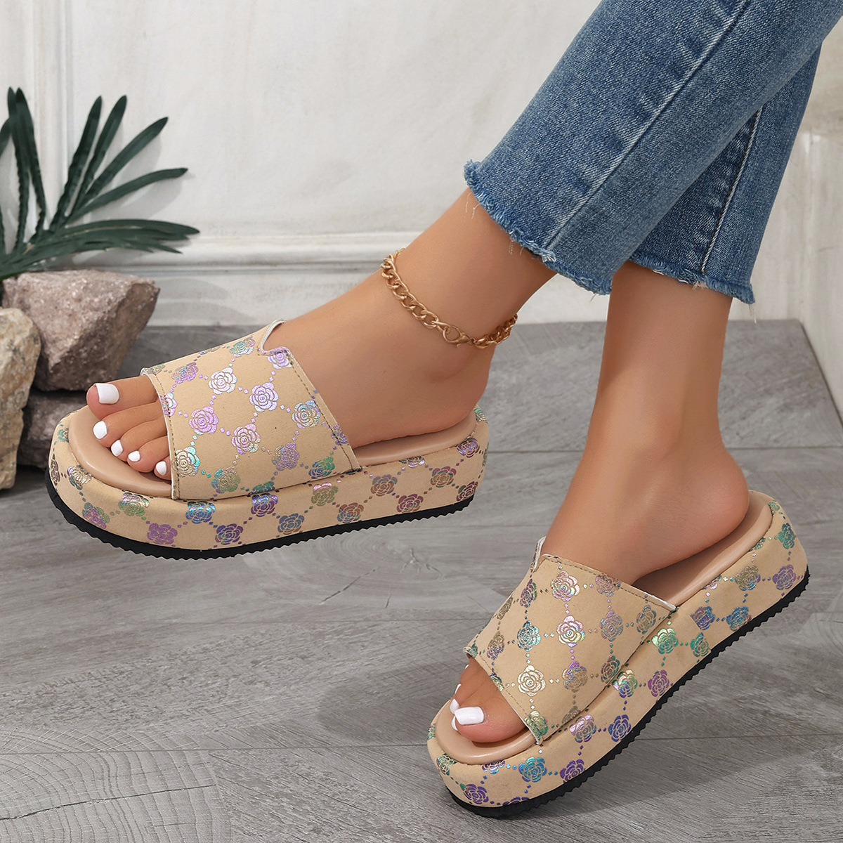 대외 무역 국경 간 플러스 사이즈 슬라이드 패턴 올매치 두꺼운 바닥 높이 증가 복장 레저 해변 휴일 샌들 및 슬리퍼 여성 패션스토어 가기