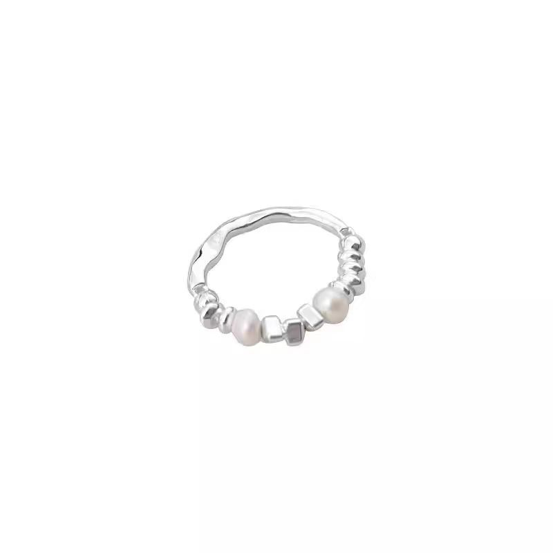 불규칙한 깨진 실버 진주 반지 여성의 틈새 맞춤형 하이 엔드 센스 핑거 링 패션 핀 링 올 매치 링