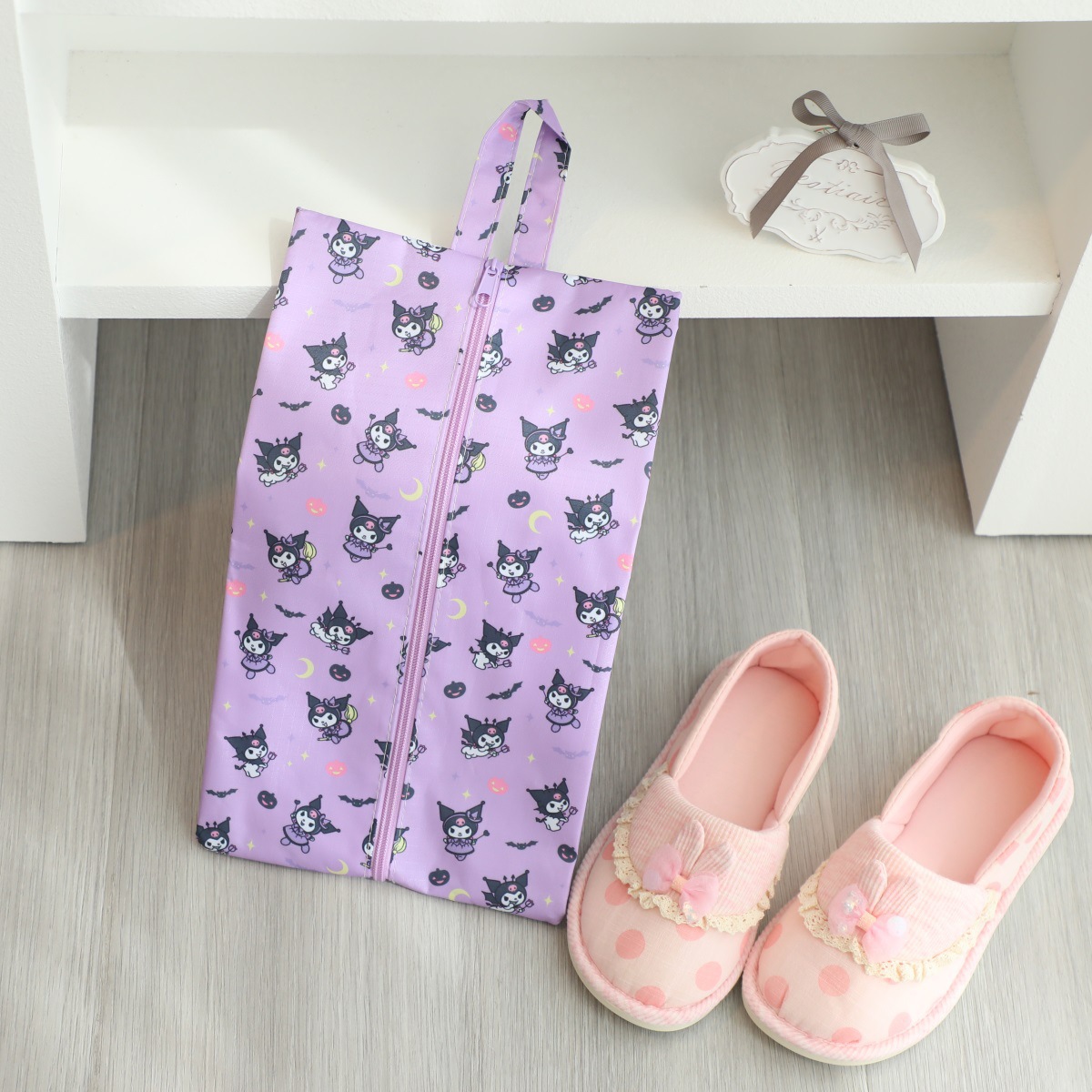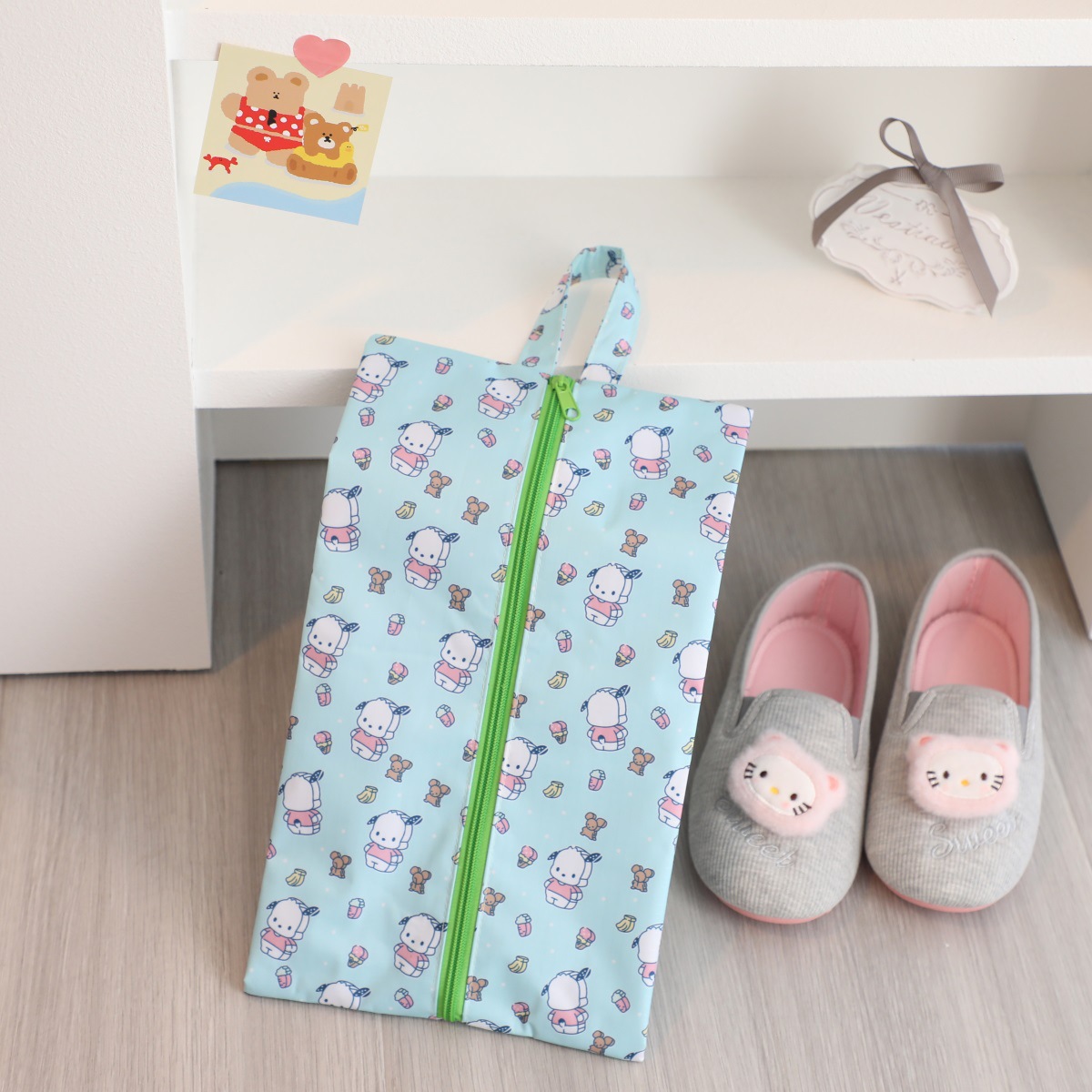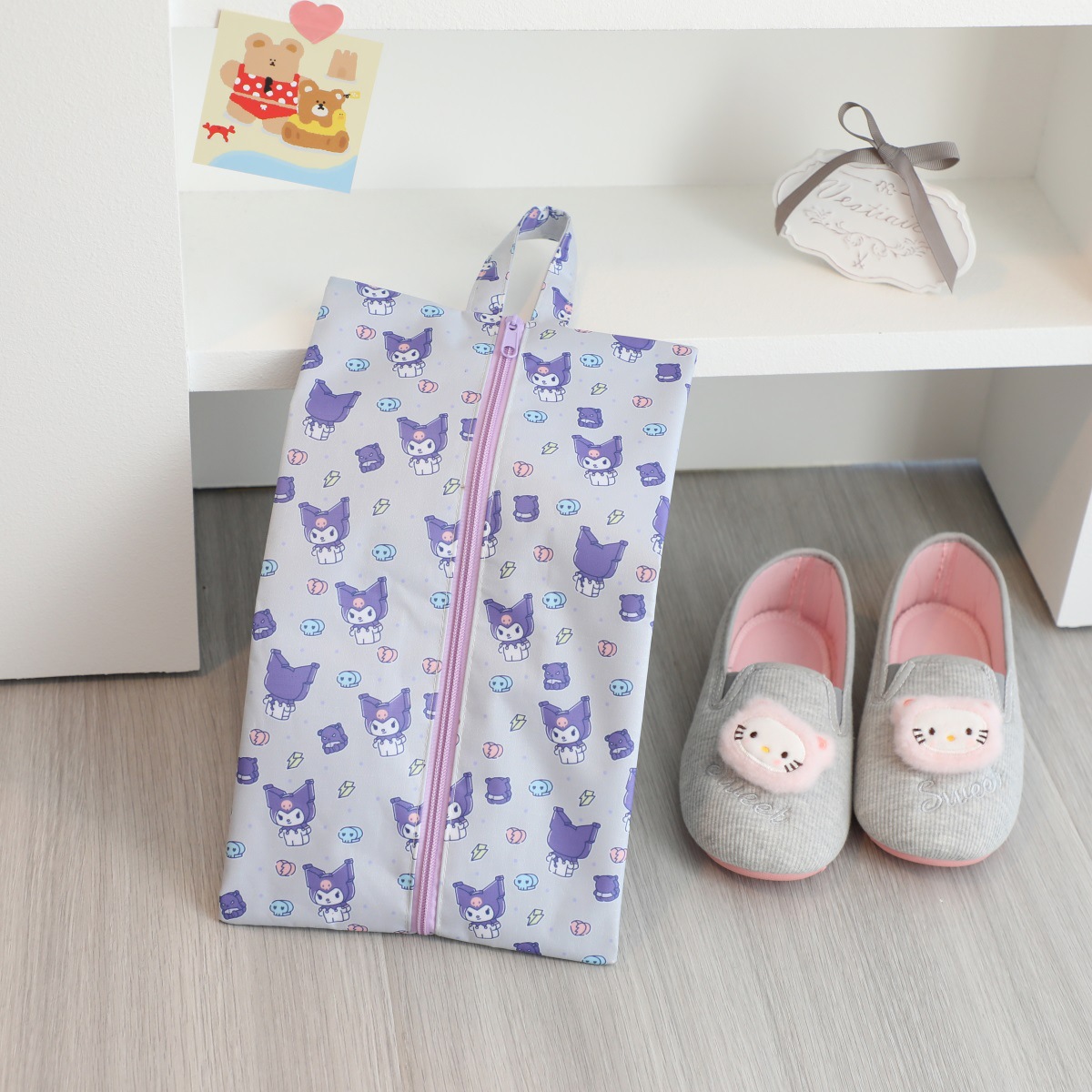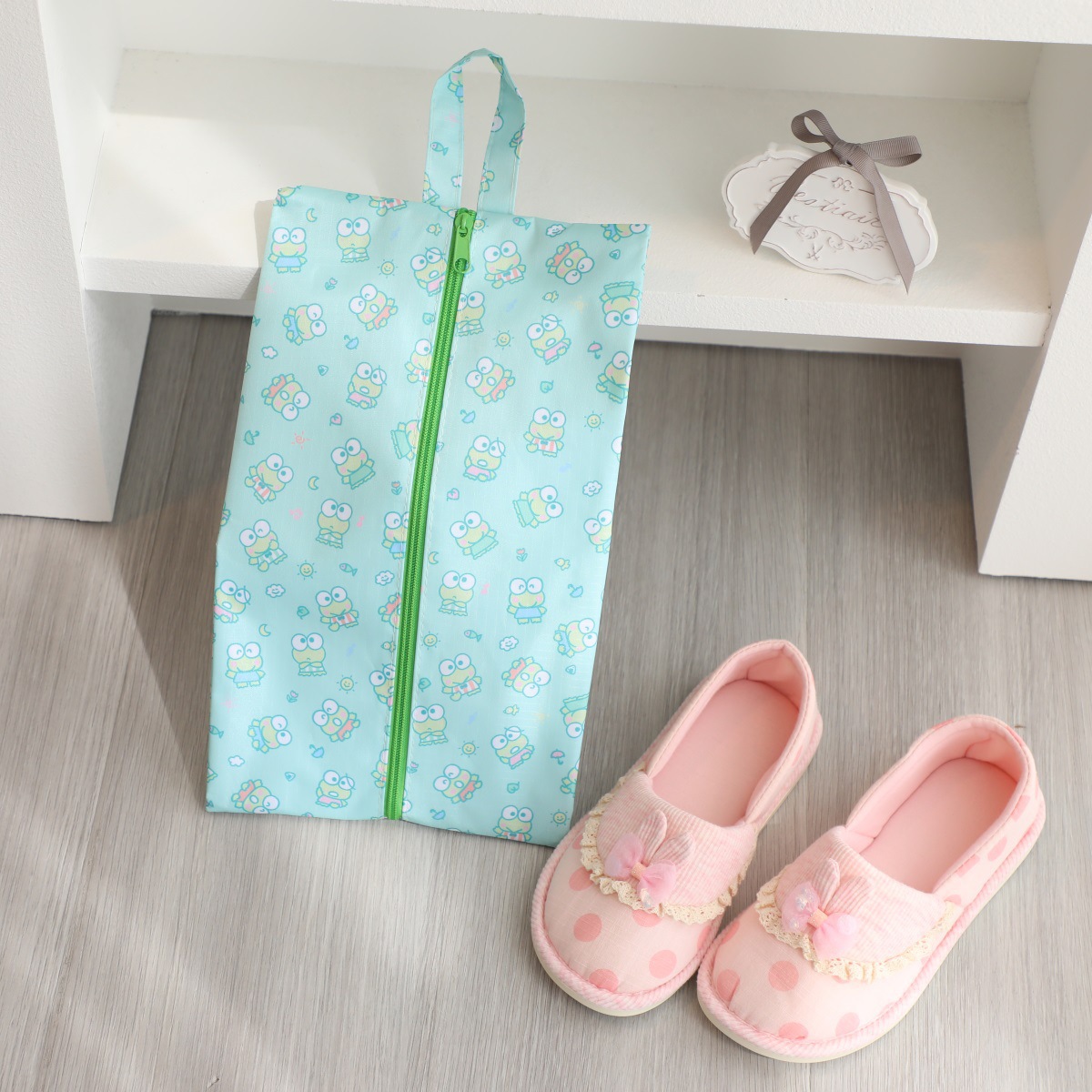 귀여운 휴대용 여행 어린이 해변 신발 보관 가방 Kulomi 개구리 옥스포드 직물 지퍼 신발 가방