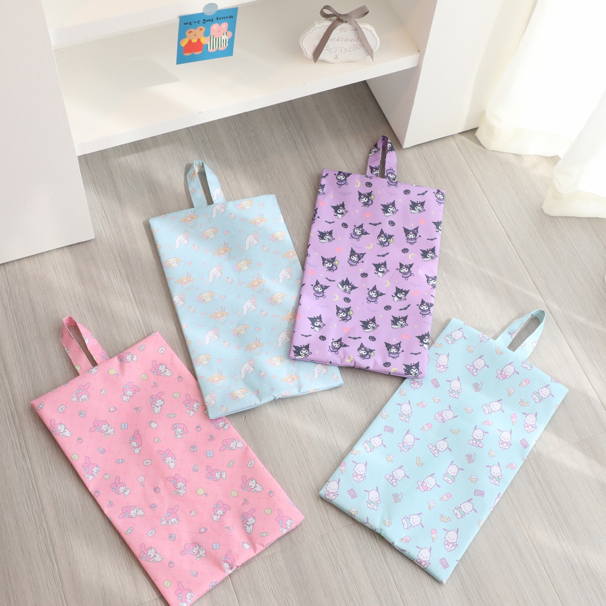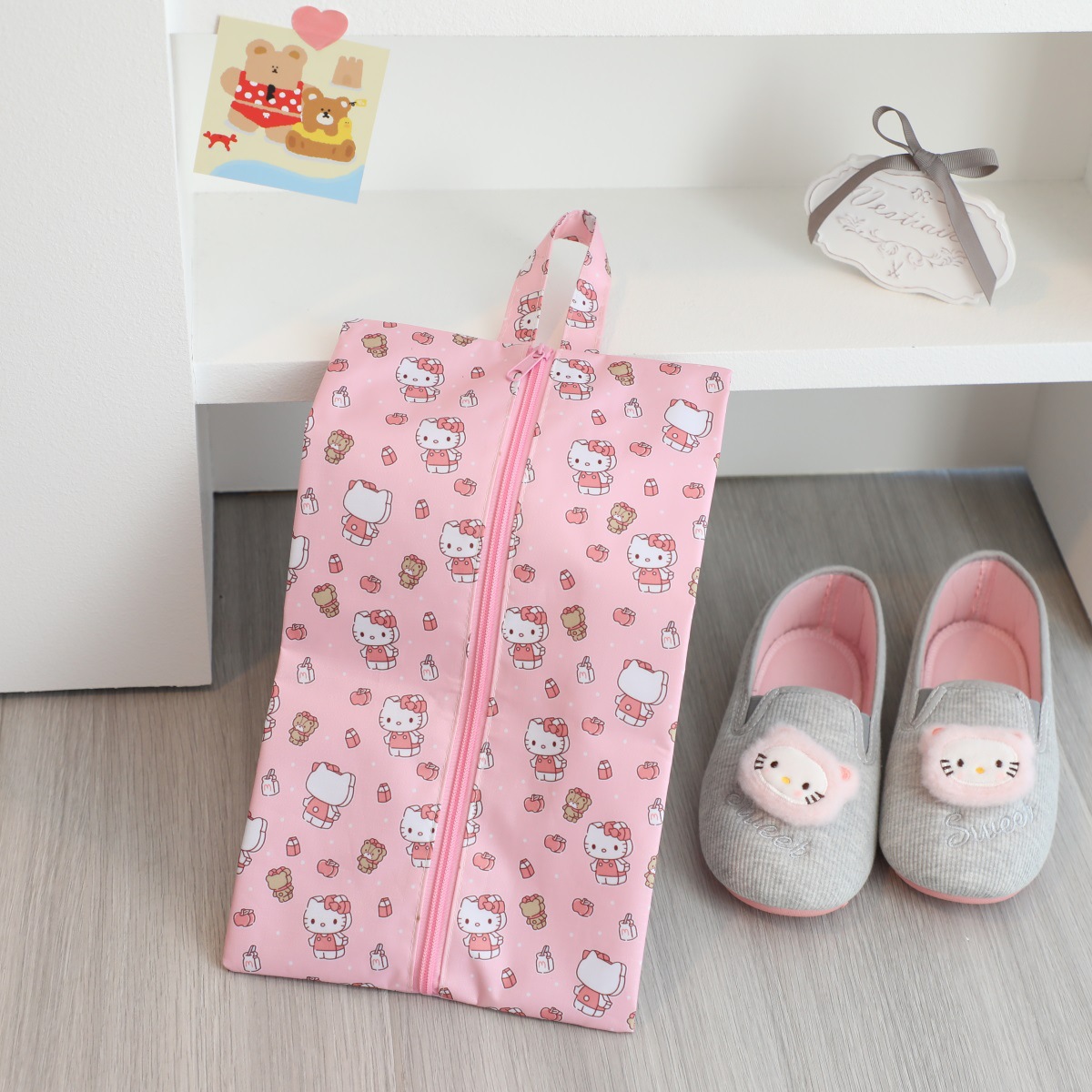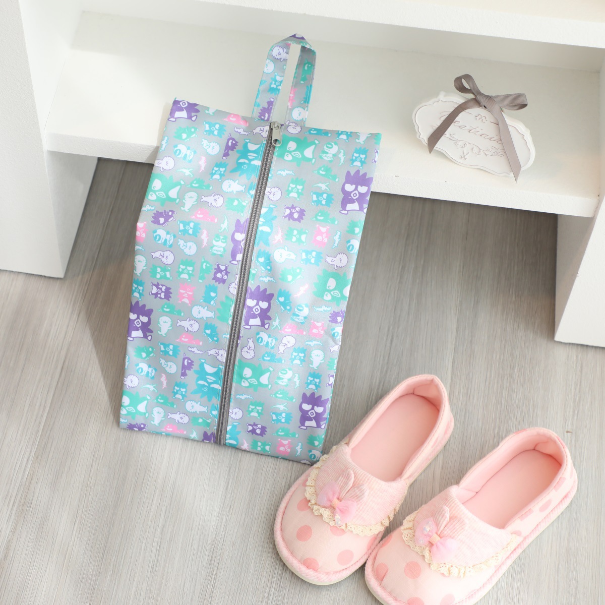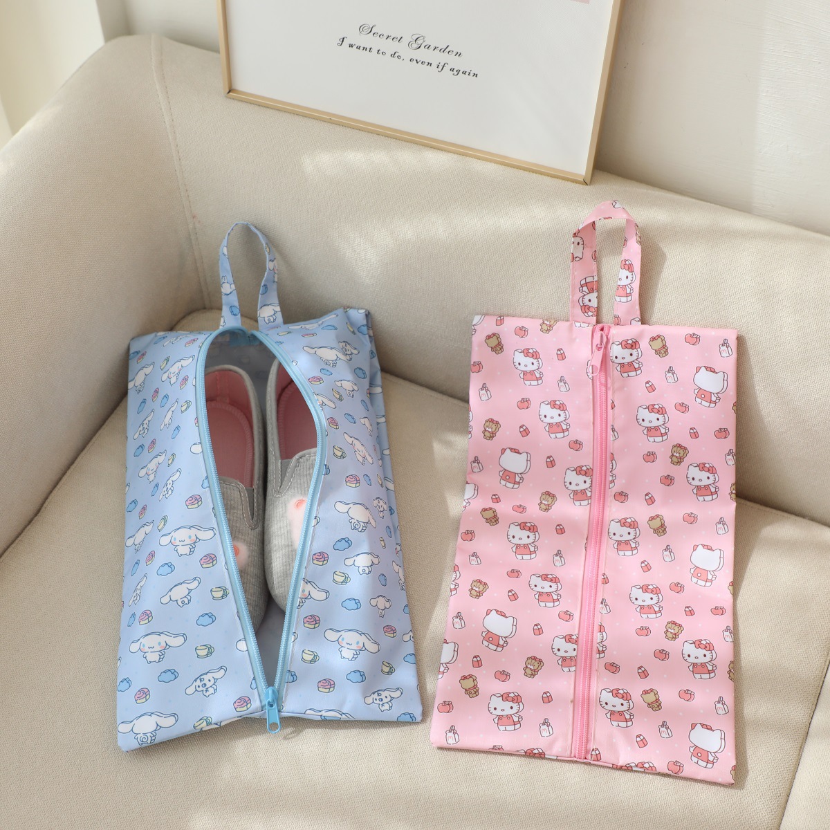 귀여운 휴대용 여행 어린이 해변 신발 보관 가방 Kulomi 개구리 옥스포드 직물 지퍼 신발 가방